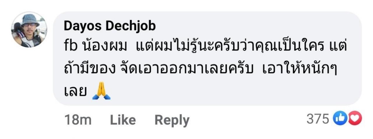 ด้าน ต่อย ดายศ เดชจบ พี่ชายของแตงโมก็สงสัยเช่นกันว่า ใครมาใช้เฟซบุ๊กของน้องสาวโพสต์อย่างนี้ โดยเจ้าตัวได้เข้ามาคอมเมนต์ว่า "fb น้องผม แต่ผมไม่รู้นะครับว่าคุณเป็นใคร แต่ถ้ามีของ จัดเอาออกมาเลยครับ เอาให้หนักๆ เลย".