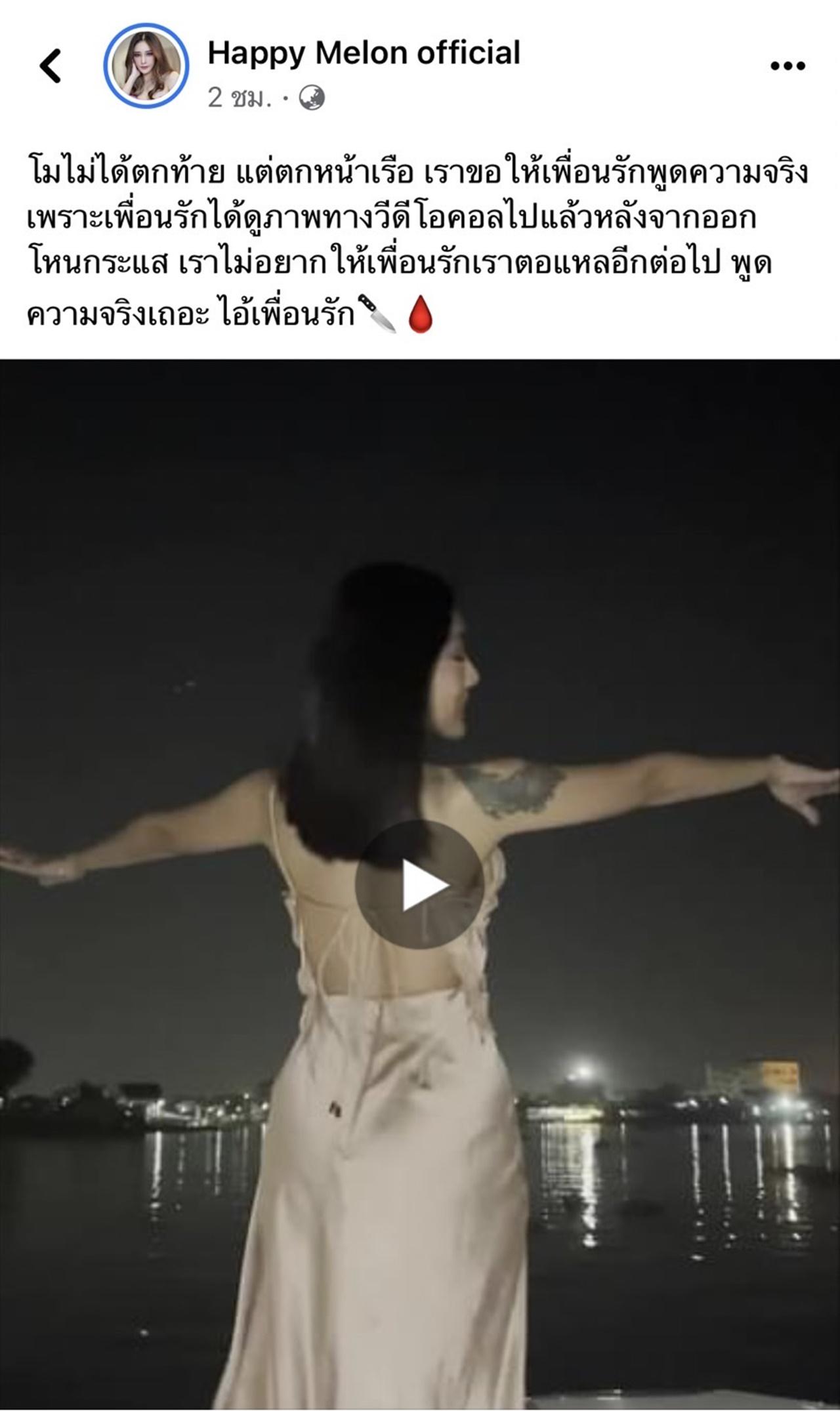 "โมไม่ได้ตกท้ายเรือ แต่ตกหน้าเรือ เราขอให้เพื่อนรักพูดความจริง เพราะเพื่อนรักได้ดูภาพทางวีดีโอคอลไปแล้วหลังจากออกโหนกระแส เราไม่อยากให้เพื่อนรักเราตอแหลอีกต่อไป พูดความจริงเถอะ ไอ้เพื่อนรัก"