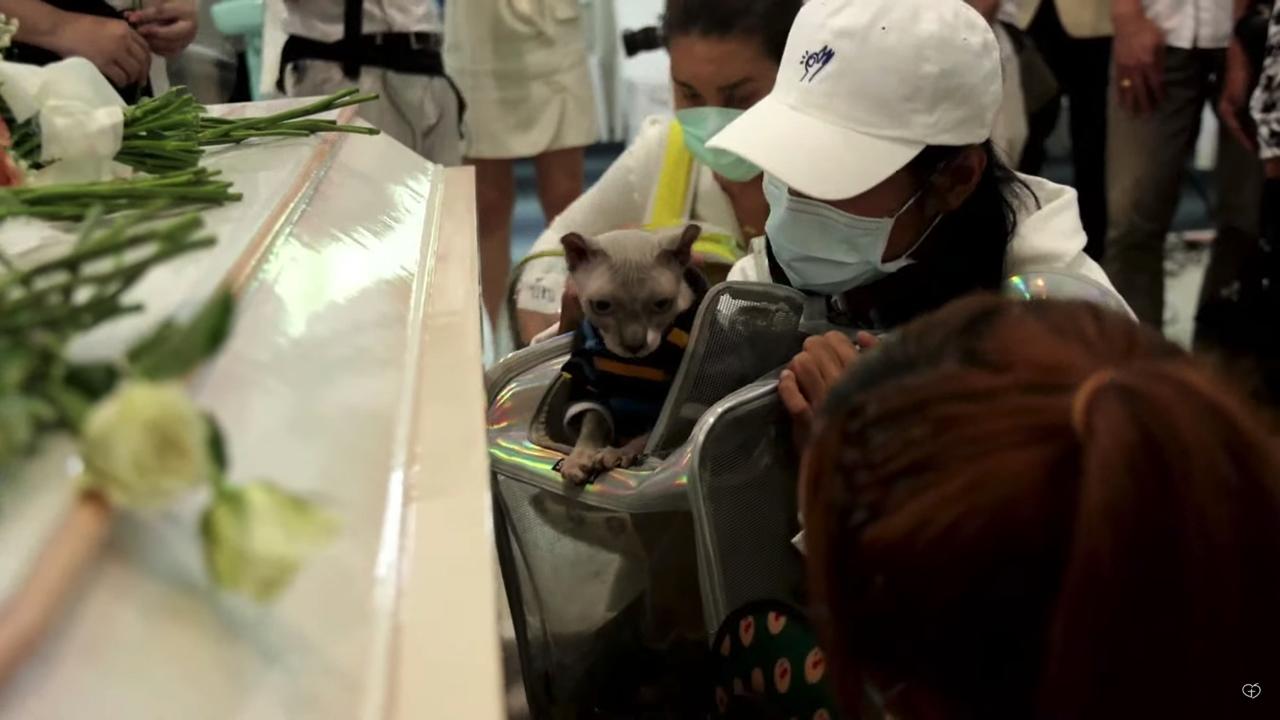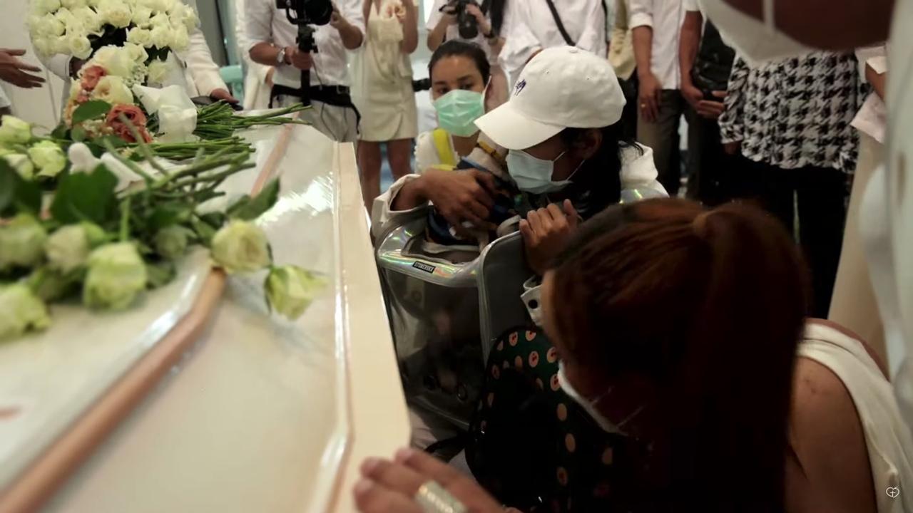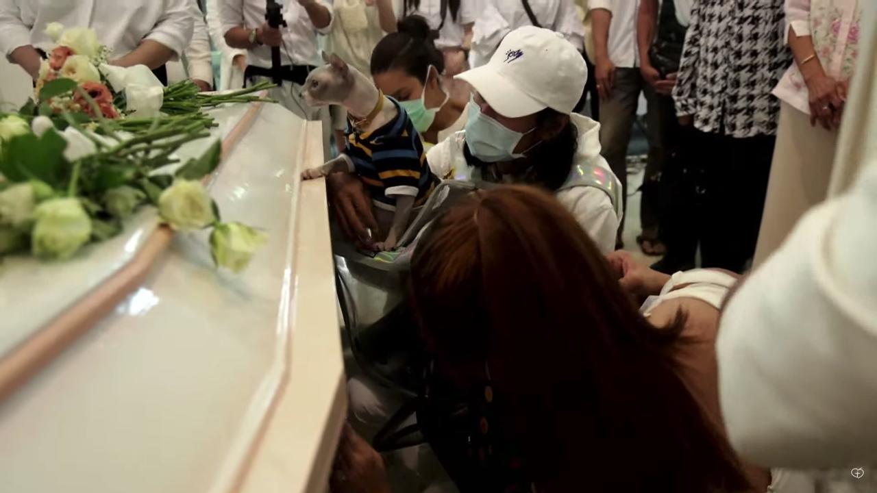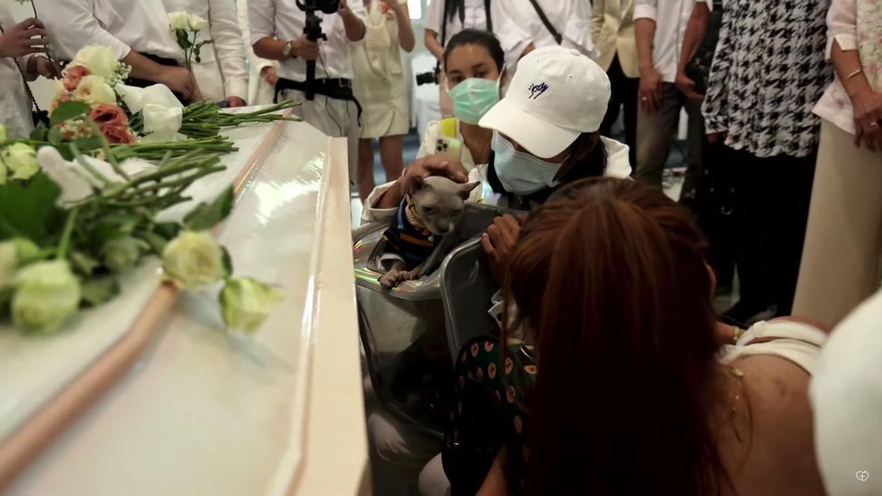 และในช่วงใกล้พิธีฌาปนกิจ เบิร์ด แฟนของแตงโมและเพื่อนๆ ได้อุ้มน้องแมวทั้ง 3 ตัวที่อยู่ในกระเป๋าแมว และเปิดให้น้องทั้ง 3 ออกมาลาแม่โมเป็นครั้งสุดท้าย.