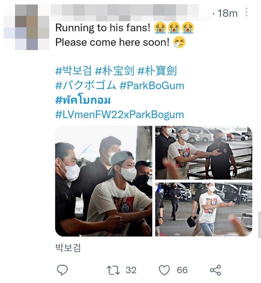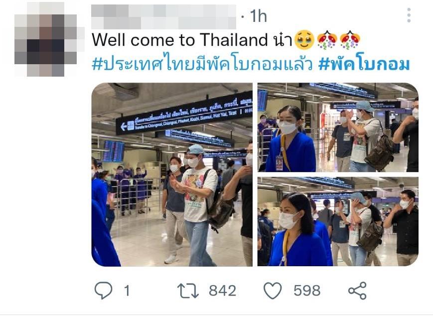 โดยมีแฟนๆ แชร์ภาพและคลิปเมื่อพัคโบกอมเดินทางมาถึงประเทศไทย ตั้งแต่ออกจากเครื่องบินจนมาถึงทางออก ก่อนจะขึ้นรถที่มารอรับ และตลอดเวลาที่อยู่ในสนามบิน พระเอกหนุ่มได้โบกมือทักทายแฟนๆ ที่มารอต้อนรับด้วย ซึ่งแฟนๆ พร้อมใจโพสต์ภาพ คลิป และติดแฮชแท็ก #พัคโบกอม จนติดเทรนด์ทวิตเตอร์ประเทศไทย