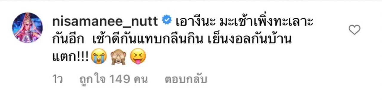 ล่าสุดเจ้าตัวได้โพสต์ภาพโมเมนต์สุดหวาน ที่แฟนหนุ่มได้มาคุกเข่าขอแต่งงานหน้าหอไอเฟล พร้อมเขียนแคปชั่นว่า "ห้ะ!!!...แกคุกเข่าทำไม แกล้วงจะอะไรออกมา คลิปสุดท้ายที่ปารีส มา6โมงเย็นนี้ #พี่ยี่สิบ" จากนั้นก็ได้เขียนเพิ่มเติมว่า "เอางี้นะ มะเช้าเพิ่งทะเลาะกันอีก เช้าดีกันแทบกลืนกิน เย็นงอลกันบ้านแตก!!!"