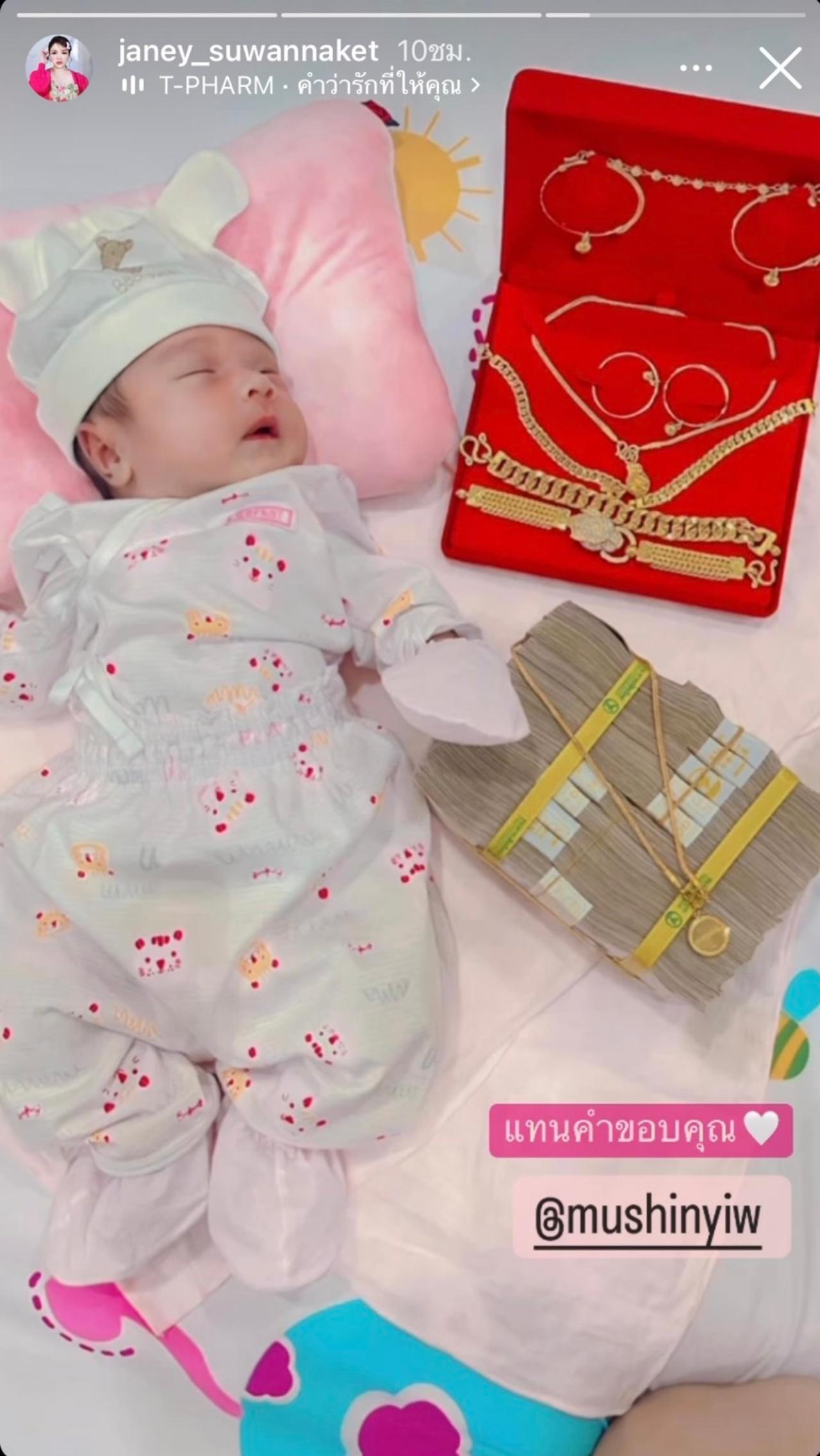 ซึ่ง เจนนี่ ได้หมดถ้าสดชื่น ก็ได้ทำตามสัญญา ควงสามี ยิว ฉัตรมงคล ไปซื้อทองให้ลูกสาวจัดหนักจัดเต็มแบบชุดใหญ่ไฟกะพริบ และแถมยังมีเงินอีกเป็นฟ่อนให้น้องยูจินเป็นของขวัญ ก่อนจะโพสต์รูปลงในไอจีสตอรี่ของทั้งคู่.