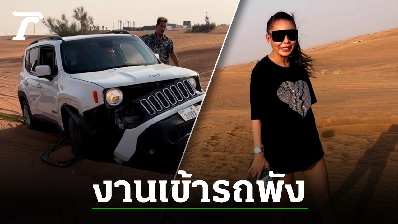 โดย เป็กกี้ ศรีธัญญา โพสต์คลิปเหตุการณ์ตอนที่รถติดหล่ม ตอนแรกก็พยายามช่วยกันเข็นรถแต่ไม่เป็นผล แถมพอใช้รถช่วยลาก แม้จะดึงขึ้นได้สำเร็จ แต่กระจังหน้าก็หลุดยับเยิน ทำเอาเป็กกี้ถึงกับกรี๊ดแตกหลังเห็นภาพดังกล่าวและบอกว่า “จ่ายตังค์เพียบ!” ซึ่งเป็กกี้ก็เขียนแคปชั่นบรรยายคลิปไว้ว่า “ฟ้าจรดทราย อุบัติภัยจึงเกิดขึ้น #ไปที่ไหนบรรลัยเกิด #กรี้ดดดดดดดด #DUbai”