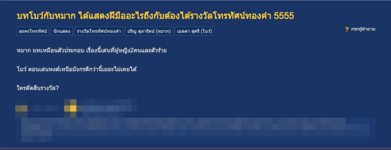 หลังจากที่นางเอกสาว โบว์ เมลดา คว้ารางวัลนักแสดงนำหญิง จากผลงานละครเรื่องมนต์รักหนองผักกะแยง เวทีโทรทัศน์ทองคำ ครั้งที่ 36 มาสดๆ ร้อนๆ งานนี้ก็กลับมีประเด็นดราม่าเกิดขึ้นซะแล้ว