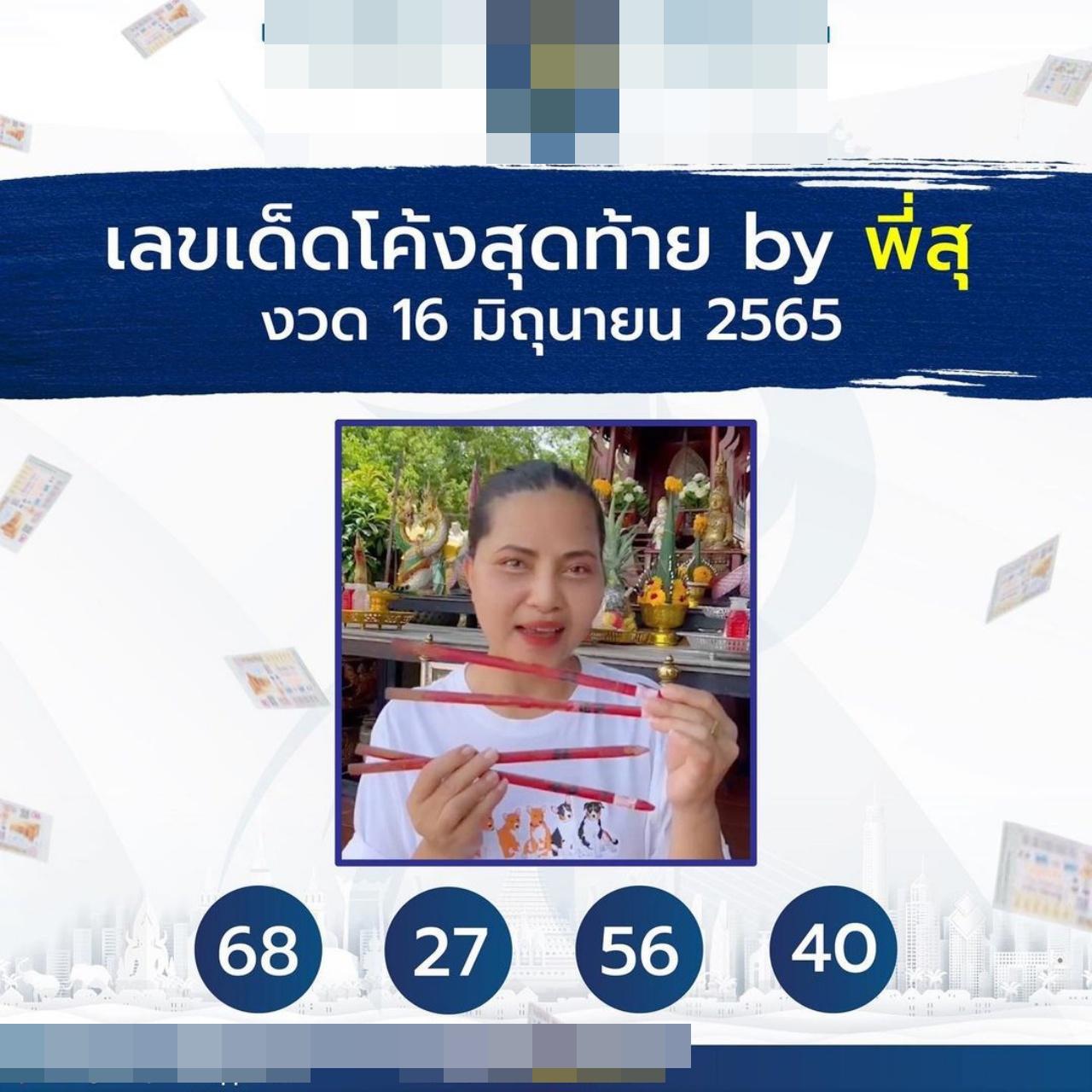 และล่าสุดในวันนี้ก่อนที่หวยจะออก สุนารี ก็ได้แชร์เลขเด็ดในดวงใจของตัวเองหลังจากที่ไปเซียมซี ซึ่งตัวเลขที่เจ้าตัวบอกมี 68, 27, 56, 40 พร้อมกับบอกว่า "โค้งสุดท้ายของการเป็นเศรษฐีใหม่แล้วนะคะทุกคนนนนน"