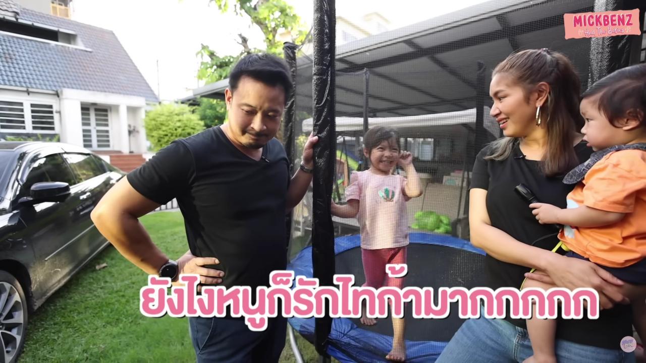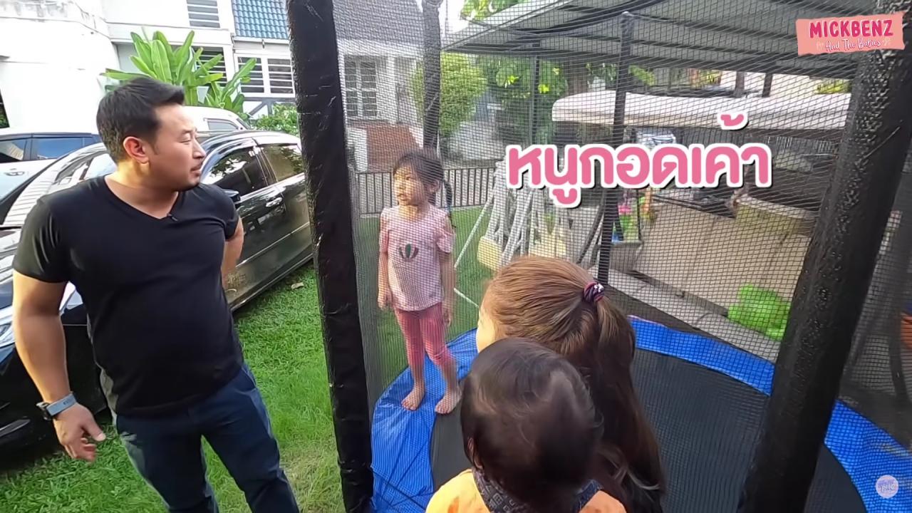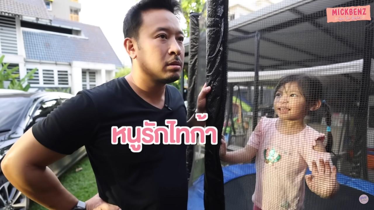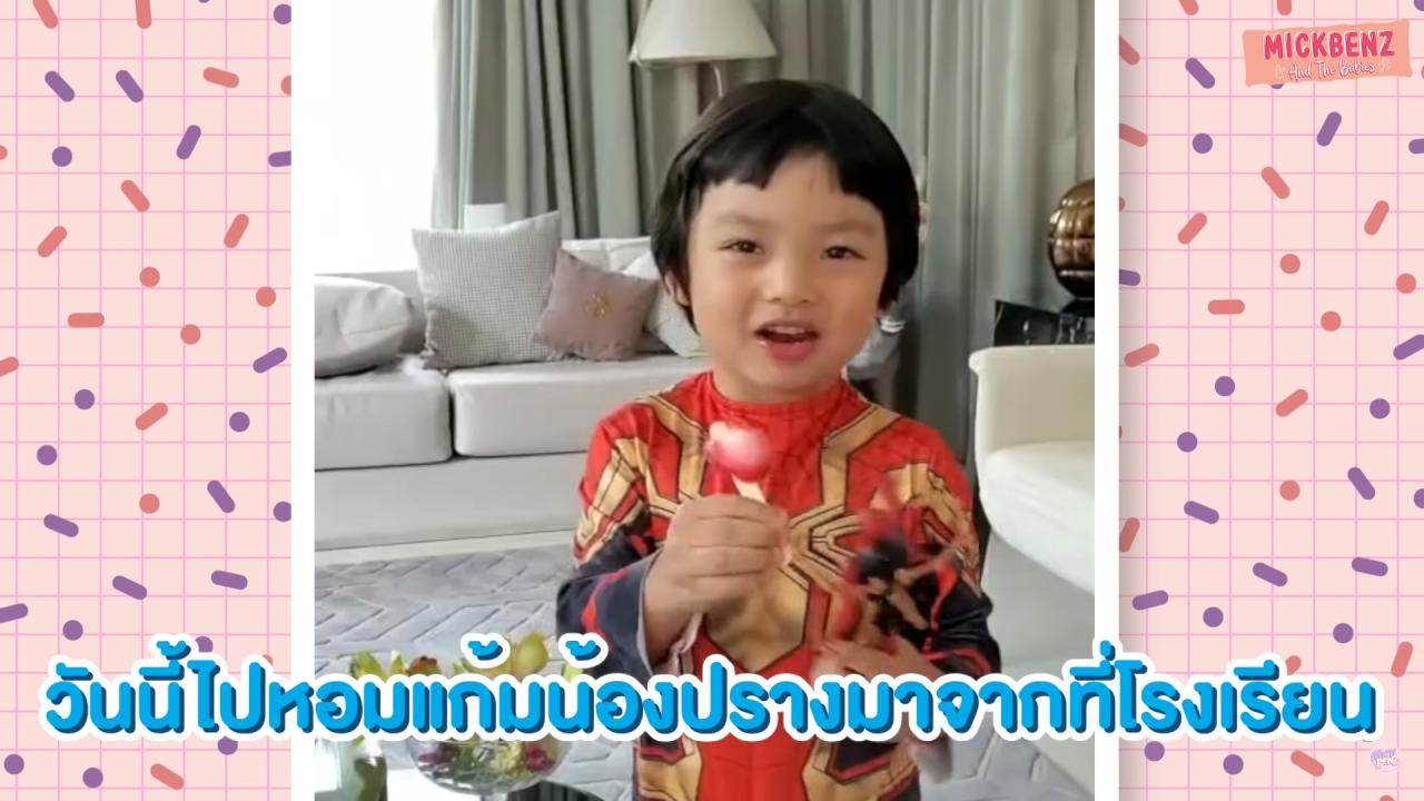 เบนซ์ถามลูกอีกว่าวันนี้ไปโรงเรียนเขามาหอมอีกหรือเปล่า น้องปรางบอกว่าไม่เลย มิคถามลูกว่าแล้วเกิดอะไรขึ้น น้องปรางบอกว่า “กอดไทก้า หนูกอดเค้า” แถมยังพูดถึงชื่อเพื่อนคนอื่นๆ อีก มิคถึงกับบอกว่าทำไมอยู่ดีๆ พ่อก็เหงื่อแตก เบนซ์ถามลูกอีกว่าถ้าปรางไปโรงเรียนแล้วมีคนมาหอมแก้ม ปรางจะให้มั้ย น้องปรางส่ายหน้าบอกว่า “พ่อเราดุ” ทำเอาพ่อมิคค่อยใจชื้นขึ้นมาหน่อย