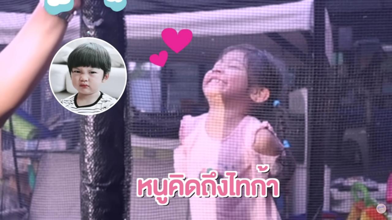 ทำเอามิคทำหน้าเข้มขึ้นมาทันที และพูดติดตลกว่าเหตุผลนี้แหละที่ปรางจะป่วยและไม่ต้องไปโรงเรียน เบนซ์ถามลูกสาวว่าปรางชอบเขาเหรอ น้องปรางพยักหน้า ทีมงานถามว่าเกิดอะไรขึ้น มิคเล่าแบบขำๆ ว่า “ก็มีอยู่วันนึง พ่อไทก้าส่งคลิปมาให้ ไทก้าพูดว่า “พ่อ วันนี้ไทก้าหอมน้องปรางมาจากโรงเรียน” แล้วเพชรจ้าเขาก็ถามว่าไม่กลัวพ่อเขาดุเหรอ พ่อเขาโหดนะ ไทก้าก็หันมาทำหน้าเหมือนแบบไม่กลัว"