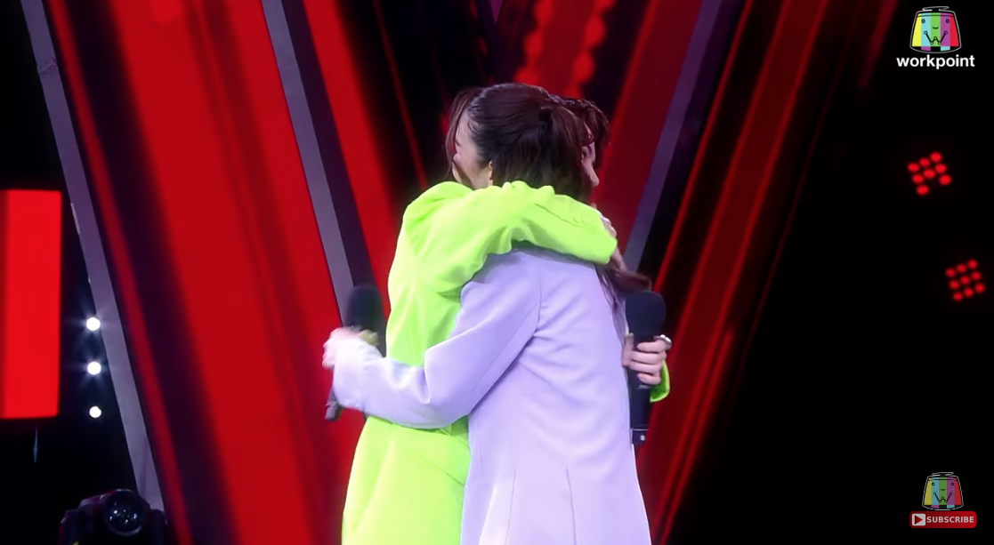 วันนี้เราอาจจะเป็นความหวังดีในอีกรูปแบบนึงและมันก็จะยังอยู่ และเชียร์ก็จะส่งกำลังใจให้เขาเหมือนเดิม ก่อนที่ทั้งคู่จะสวมกอดกัน ซึ่งทำเอาเพื่อนร่วมรายการและคนดูในห้องส่งปรบมือให้กับมิตรภาพที่ดีๆ ของทั้งคู่ที่มีให้กัน