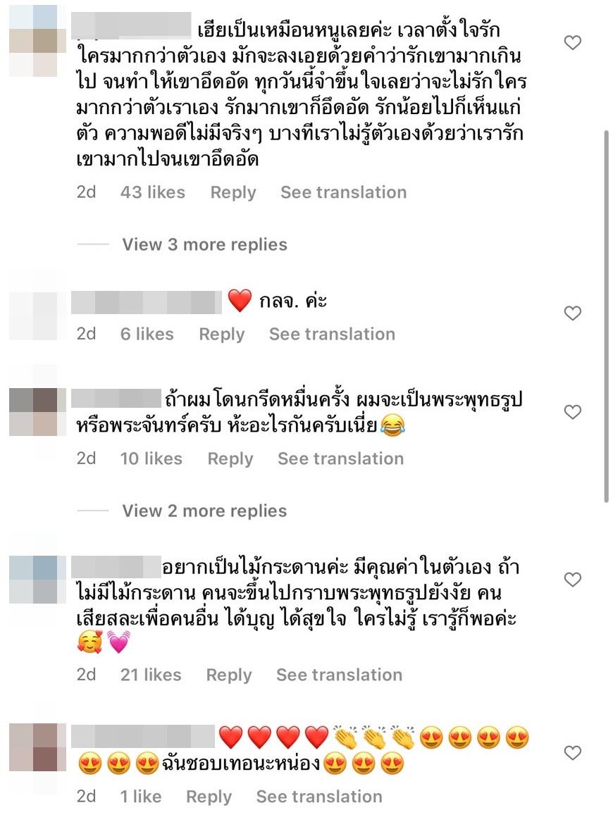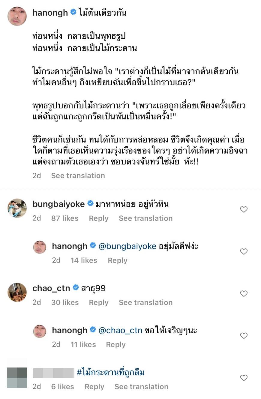 ท่ามกลางคอมเมนต์จากแฟนๆ ที่ต่างแสดงความคิดเห็น อาทิ ถ้าผมโดนกรีดหมื่นครั้ง ผมจะเป็นพระพุทธรูป หรือพระจันทร์ครับ ห้ะอะไรกันครับเนี่ย, อยากเป็นไม้กระดานค่ะ มีคุณค่าในตัวเอง ถ้าไม่มีไม้กระดาน คนจะขึ้นไปกราบพระพุทธรูปยังงัย คนเสียสละเพื่อคนอื่น ได้บุญ ได้สุขใจ ใครไม่รู้ เรารู้ก็พอค่ะ, ห๊ะะะะะ เกือบดีแล้ว คุมหน่อง, #ไม้กระดานที่ถูกลืม, I support You ฯลฯ