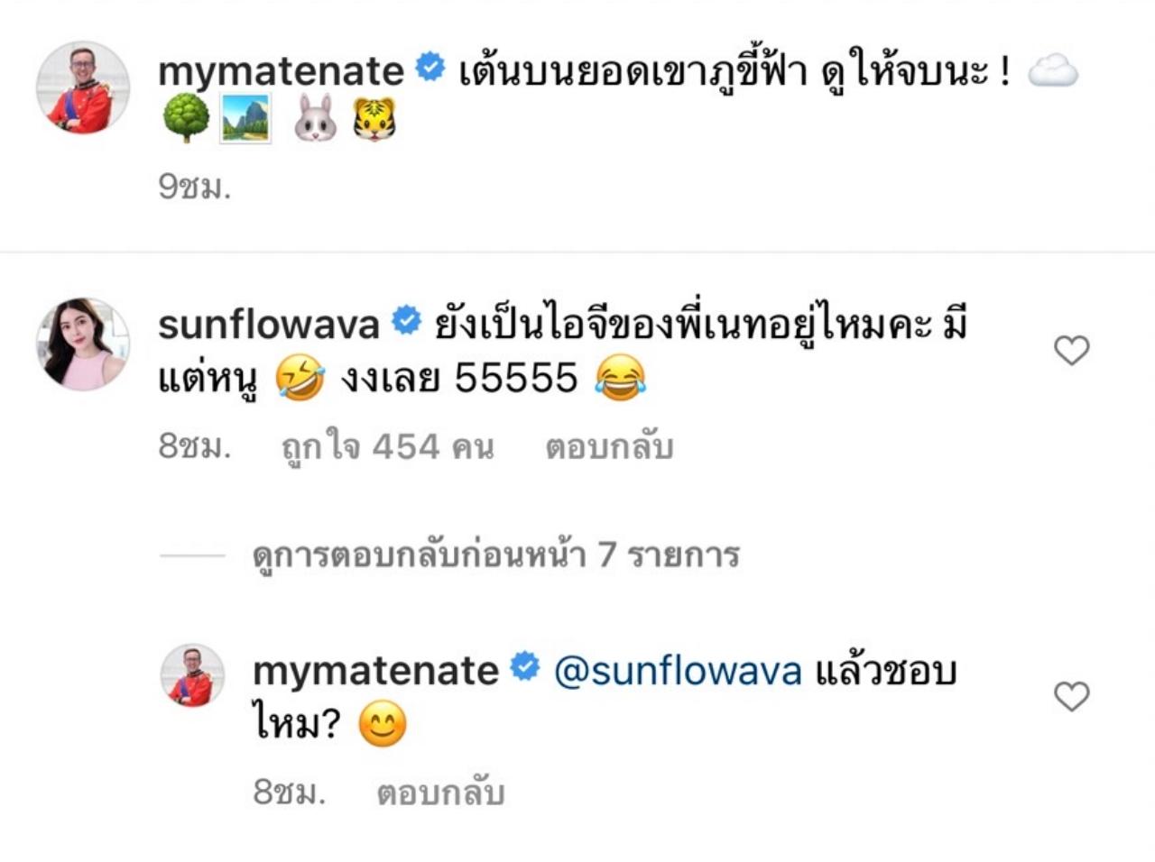 งานนี้ทำเอาแฟนๆ ที่ติดตามต่างเข้ามาแซวกันเป็นแถว บอกว่า น่ารักเกินปุยมุ้ย, ตายค่ะ เจอช็อตนี้เข้าไป, เอวาชอบมั้ยไม่รู้แต่แฟนคลับชอบมากกก, จีบเก่งจริงๆพี่เนท, โอ๊ย ไม่ไหว น่ารักอะไรเบอร์นั้น ขอบคุณทั้งสองที่ทำให้วันของเรามีความสุขเพิ่มขึ้น เกินปุยมุ้ยยยย.