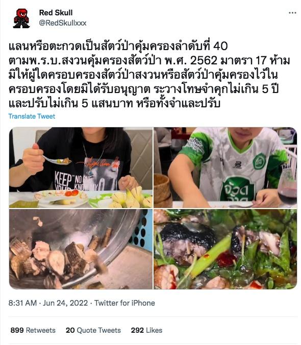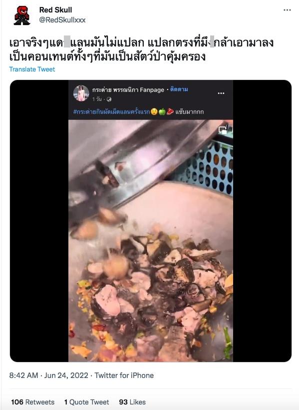 ก่อนจะทวีตข้อความเพิ่มเติมไว้ว่า “เอาจริงๆ แด-แลนมันไม่แปลก แปลกตรงที่มึ-กล้าเอามาลงเป็นคอนเทนต์ทั้งๆ ที่มันเป็นสัตว์ป่าคุ้มครอง” โดยมีชาวโซเชียลรีทวีตและแสดงความคิดเห็นเป็นจำนวนมาก ล่าสุดคลิปดังกล่าวถูกลบออกจากเพจไปแล้ว.