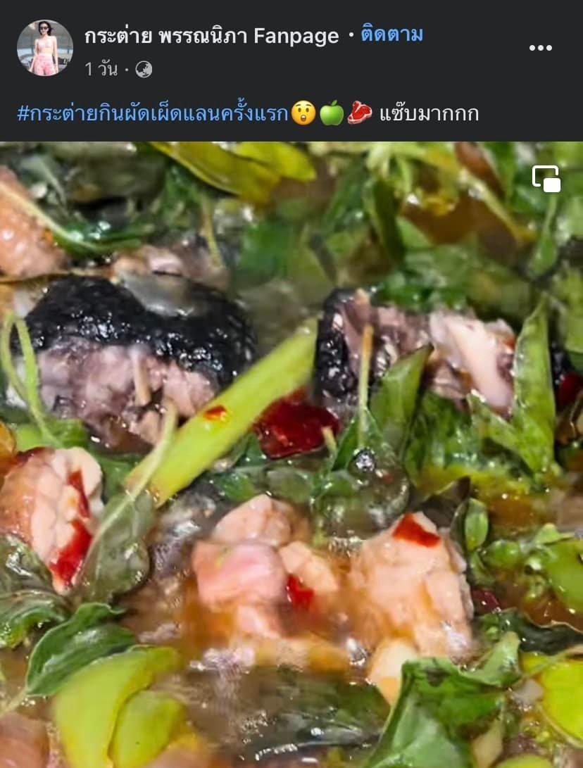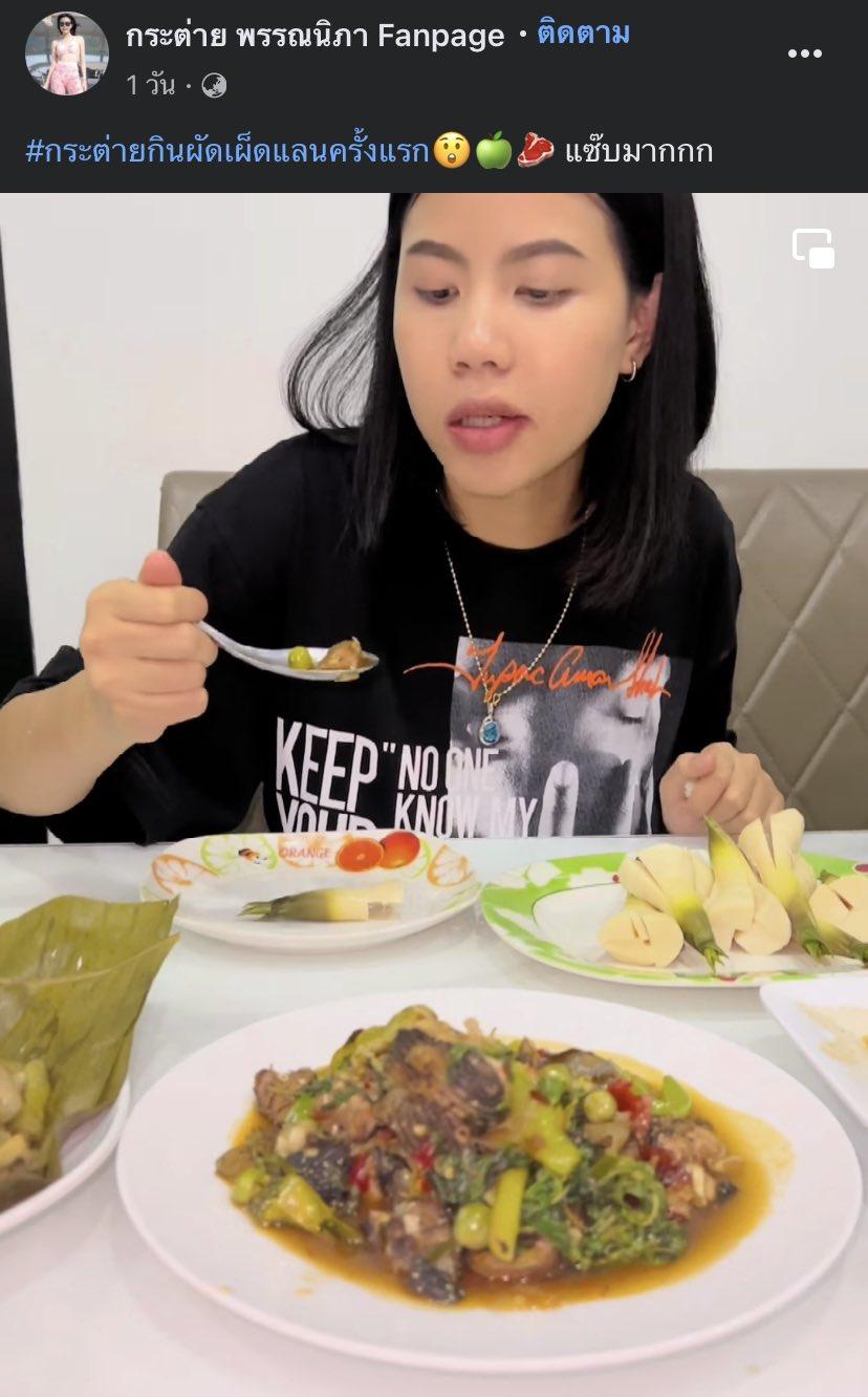 โดย กระต่าย พรรณนิภา โพสต์คลิปทำผัดเผ็ดแลน ก่อนจะชิมให้ดูแบบชัดๆ และเขียนข้อความว่า “#กระต่ายกินผัดเผ็ดแลนครั้งแรก แซ่บมากกก” โดยมีแฟนๆ เข้ามาคอมเมนต์เป็นจำนวนมาก