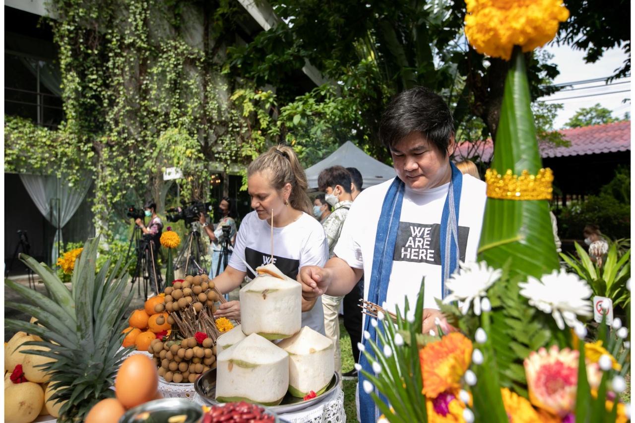 บรรยากาศในงานบวงสรวงเปิดตัวภาพยนตร์ “We Are Here” เป็นไปอย่างเรียบร้อยราบรื่นสมบูรณ์ ท่ามกลางบรรยากาศสวนสวยสไตล์อังกฤษของ The Pud English Garden