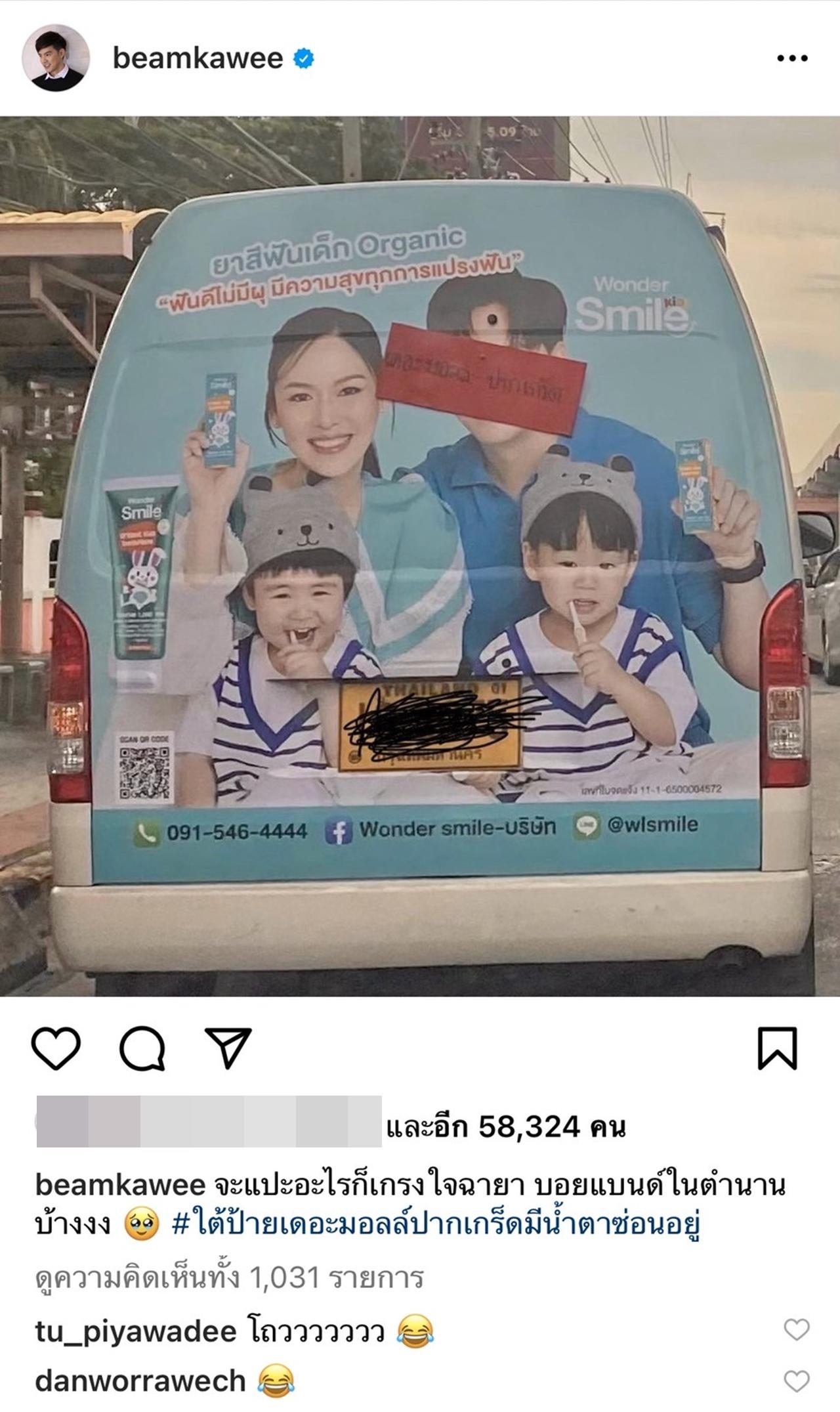 ล่าสุด บีม ก็ได้โพสต์ภาพลงโซเชียล ทำเอาคนที่เห็นต่างขำก๊ากออกมาเลยทีเดียว โดยภาพดังกล่าวเป็นภาพโฆษณาสินค้าที่ครอบครัวของ บีม ไปเป็นพรีเซ็นเตอร์ ซึ่งติดอยู่กับรถตู้ประจำทาง แต่งานนี้ก็หลุดโฟกัสตรงที่ป้ายโดยสารดันไปแปะทับหน้าพ่อบีมซะงั้น ทำเอาเจ้าตัวถึงกับบ่นออกมาว่า