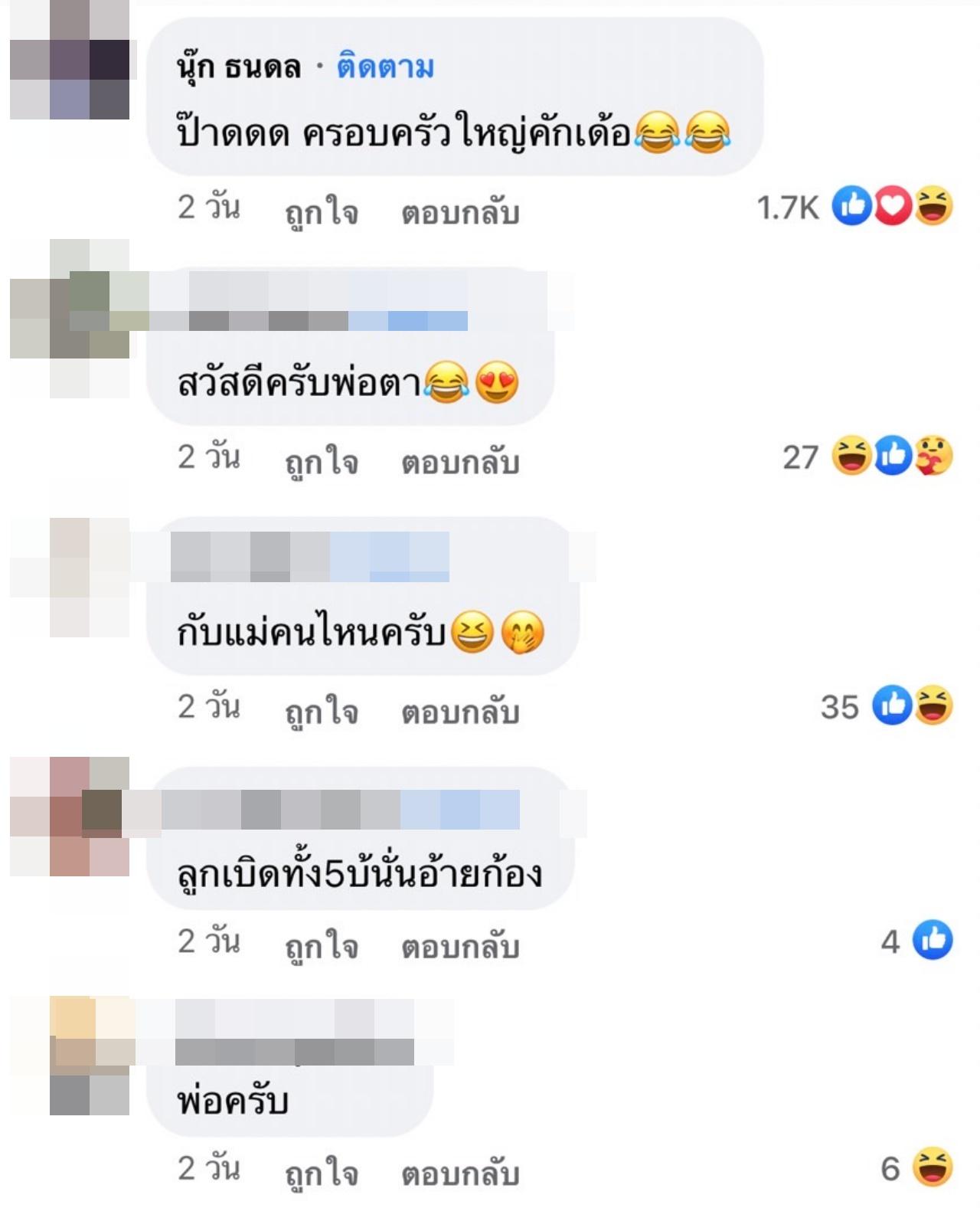 ก่อนที่นักร้องดังจะถูกแฟนๆ แซวยับถามขำๆ ต่อว่า มีลูก 5 แล้วมีเมียกี่คน บ้างก็คอมเมนต์แซวว่า แล้วลูกคนที่ 6 จะมีกับเมียคนไหน งานนี้ก้อง ห้วยไร่ ก็รีบเข้ามาคอมเมนต์ตอบทันทีว่ามีเมียคนเดียวเท่านั้นแน่นอน.