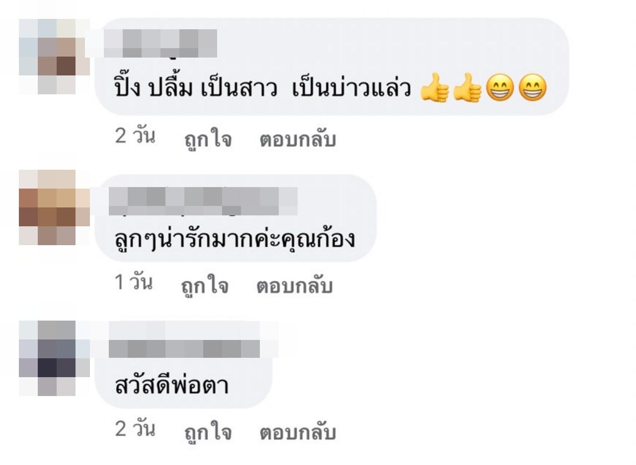 งานนี้บอกเลยว่าทำเอาหนุ่มๆ ไม่อยากจะเลื่อนผ่านไป ต้องเข้ามาคอมเมนต์สวัสดีคุณพ่อก้องกันอย่างล้นหลาม เพราะ น้องปิ๊ง สาวคนโตของหนุ่มก้อง โตเป็นสาวหน้าตาสะสวย ส่วนน้องปลื้ม ลูกชายคนรอง ก็หน้าตาดีจนถูกสาวๆ จองขอเป็นแฟนลูกชายพ่อก้องเพียบ