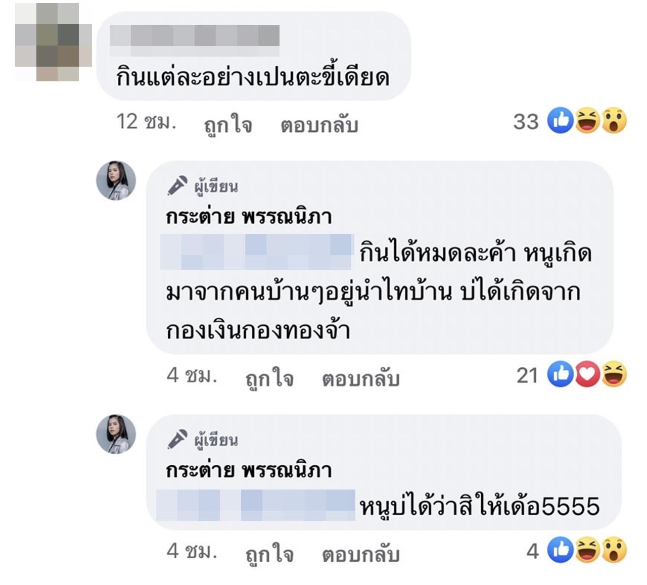 หลังจากที่กระต่ายได้โพสต์คลิปดังกล่าวลงเฟซบุ๊ก หลายคนที่ติดตามก็ได้เข้ามาแสดงความคิดเห็นกันเป็นจำนวนมาก มีทั้งบอกว่าน่ากิน น่าอร่อย และบางส่วนก็มองว่า มันน่ากลัวเกินไป ทำไมถึงกล้ากิน กินแต่ละอย่างเป็นตาขี้เดียด ซึ่งกระต่ายเองก็ได้เข้ามาตอบกลับว่า "กินได้หมดละค้า หนูเกิดมาจากคนบ้านๆอยู่นำไทบ้าน บ่ได้เกิดจากกองเงินกองทองจ้า".