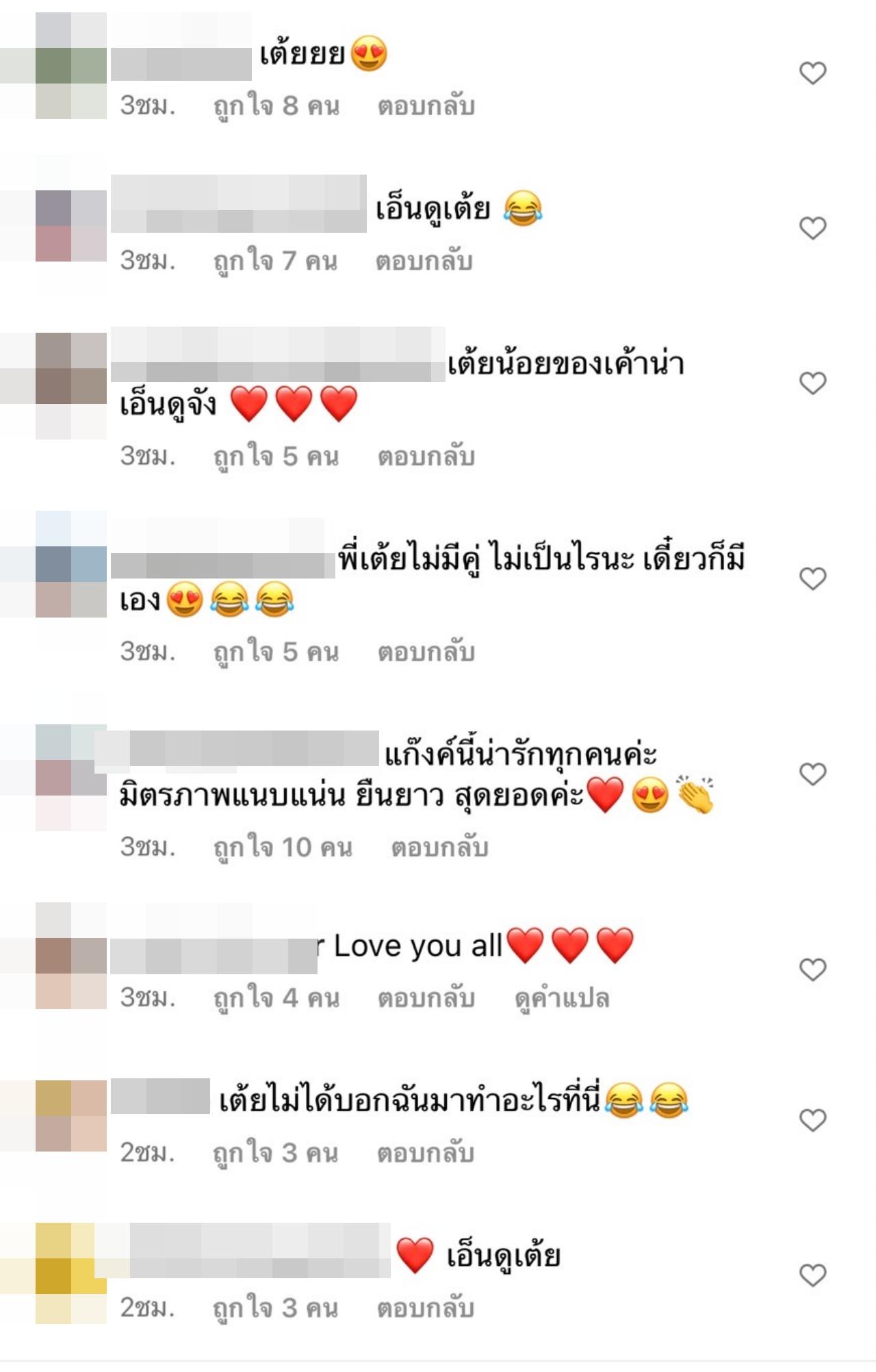 โดย แต้ว ได้เผยภาพสาวๆ แก๊งเฟอร์บี้รวมตัวกันดินเนอร์ ซึ่งทุกคนมาพร้อมหวานใจของตัวเอง แต่ เต้ย นั้นฉายเดี่ยว ด้านแฟนๆ ที่ติดตามก็ได้เข้ามาคอมเมนต์กันเป็นจำนวนมาก ซึ่งทุกคนต่างก็เอ็นดูที่ เต้ย ไม่มีคู่เหมือนเพื่อนๆ แต่หลายคนก็บอกว่า พี่เต้ยไม่มีคู่ ไม่เป็นไรนะ เดี๋ยวก็มีเอง, พี่เต้ยยยยยยยย 55555 เอ็นดู, พี่เต้ยยยยย เอ็นดู, เอ็นดูเต้ย, พี่เต้ยมีแฟนแล้วคะแต่ยังไม่พร้อมเปิดตัวค่ะ.