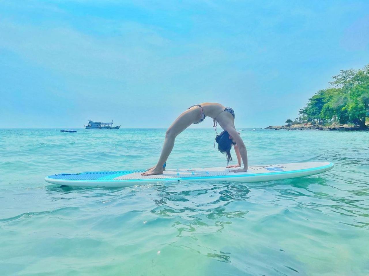 และภาพล่าสุดที่ทำให้แฟนๆ และหนุ่มๆ ต้องตะลึงตาค้างกันไปเลย กับการโพสท่ายากของสาวนกในช่วงที่เจ้าตัวไปเที่ยวพักผ่อนที่เกาะลันตา จังหวัดกระบี่ เป็นภาพที่เจ้าตัวทำท่าสะพานโค้งบนเซิร์ฟบอร์ด