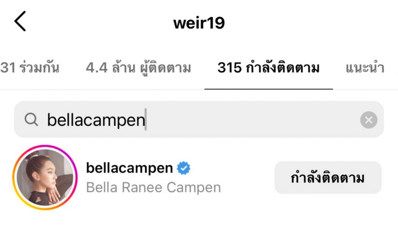 และเมื่อช่วงกลางดึกที่ผ่านมา แฟนๆ ได้จับสังเกตในอินสตาแกรมของ เบลล่า ก็ได้ลบภาพที่เคยถ่ายกับ เวียร์ หายเกลี้ยง ไม่ว่าจะเป็นภาพทริปที่เคยไปด้วยกัน หรือแม้กระทั่งงานคู่ที่เคยทำด้วยกัน ก็หายเกลี้ยงไปจากอินสตาแกรมของนางเอกสาว