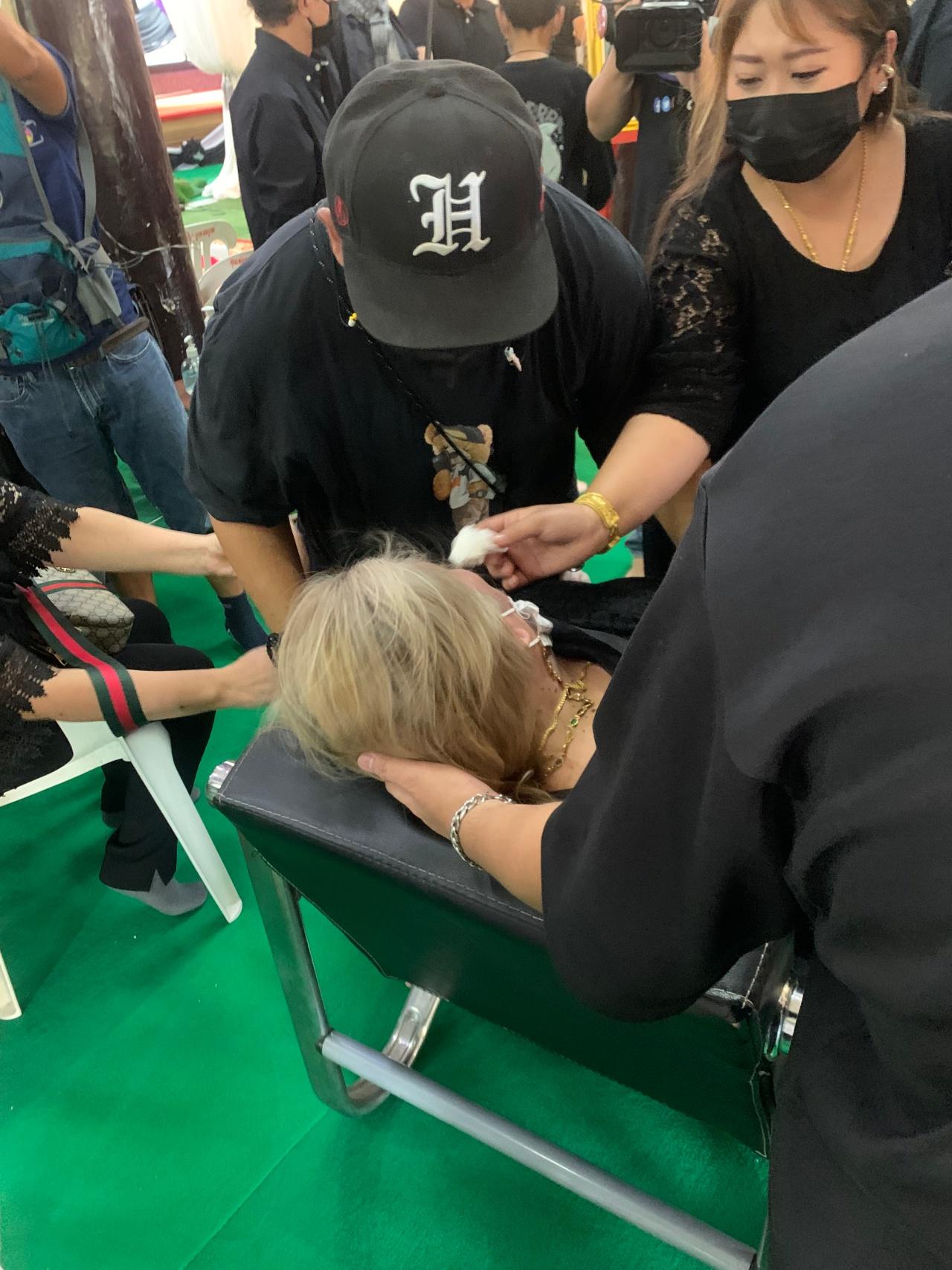 ศิลปินตลก ร่วมรดน้ำศพเพื่อไว้อาลัย โป๊งเหน่ง เชิญยิ้ม หรือ วลัชณัฏฐ์ ก้องภพฐิตารีย์ ครั้งสุดท้าย ณ ศาลาสหสามัคคีธรรม วัดช้างใหญ่ อ.บางไทร จ.พระนครศรีอยุธยา บรรยากาศเป็นไปด้วยความโศกเศร้า