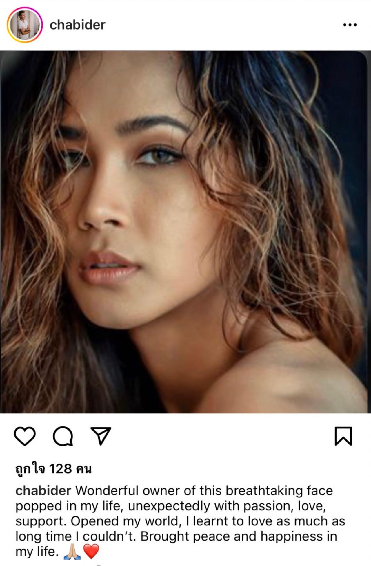 ด้านฝ่ายชายเองก็ได้ลงภาพของ เมญ่า พร้อมเขียนแคปชั่นว่า "Wonderful owner of this breathtaking face popped in my life, unexpectedly with passion, love, support. Opened my world, I learnt to love as much as long time I couldn’t. Brought peace and happiness in my life." (แปลว่า เจ้าของใบหน้าที่น่าทึ่งนี้โผล่เข้ามาในชีวิตของฉันโดยไม่คาดคิดด้วยความรัก การสนับสนุน เปิดโลกของฉัน ฉันเรียนรู้ที่จะรักให้นาน)