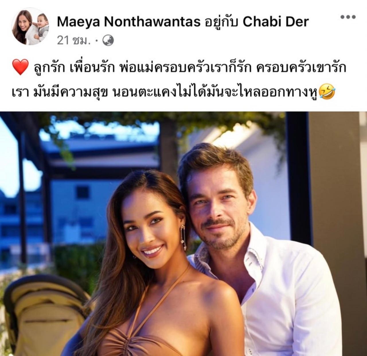 นอกจากนี้ เมญ่า เองก็ได้โพสต์ภาพ และเขียนข้อความผ่านเฟซบุ๊กตัวเองเพิ่มว่า "ลูกรัก เพื่อนรัก พ่อแม่ครอบครัวเราก็รัก ครอบครัวเขารักเรา มันมีความสุข นอนตะแคงไม่ได้มันจะไหลออกทางหู"
