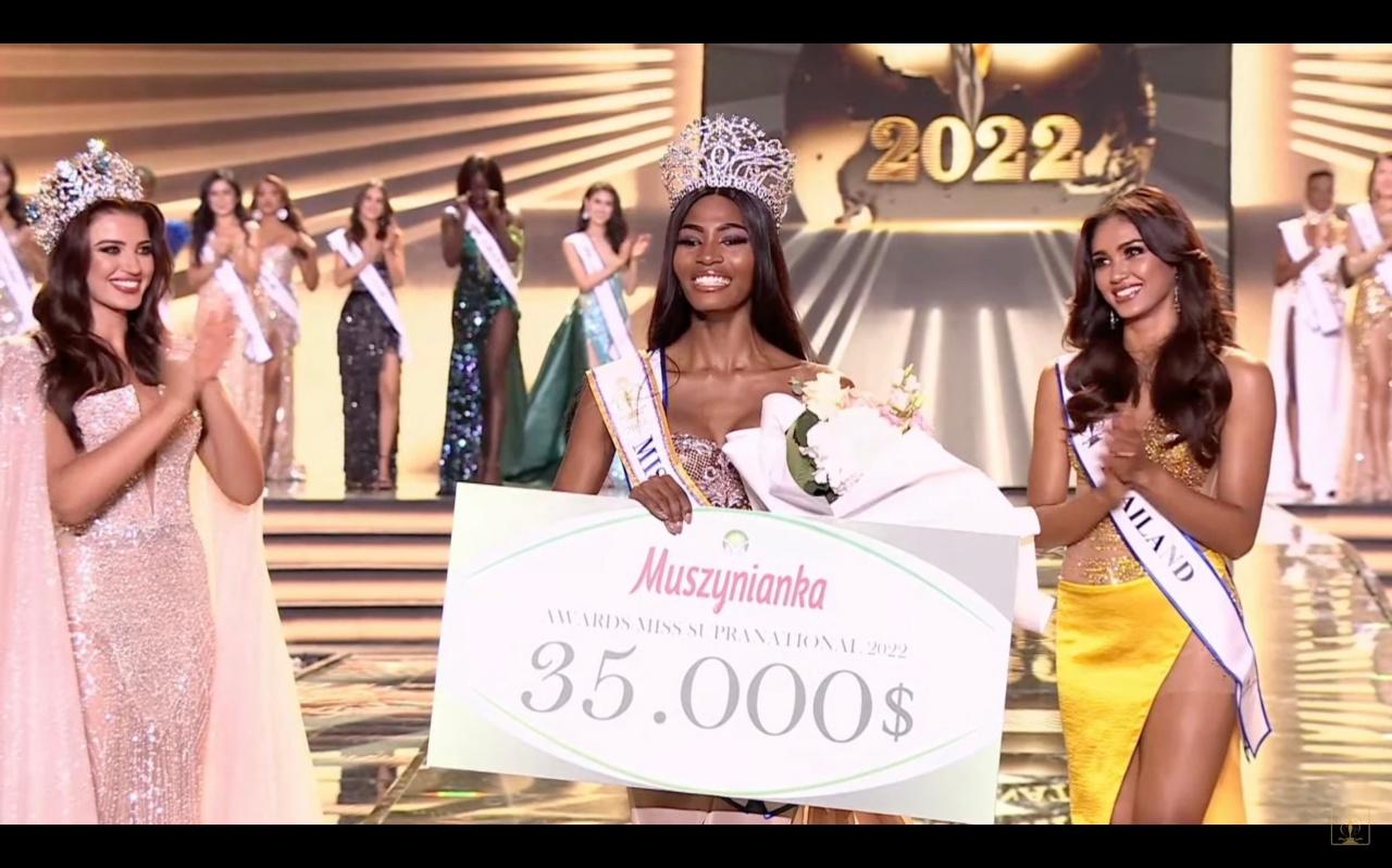 จากนั้น ช่วงเวลาสำคัญได้มาถึง พิธีกรได้ประกาศตำแหน่ง โดยผู้คว้ามงกุฎ “มิส ซูปร้าเนชั่นแนล 2022” ได้แก่ สาวงามจากแอฟริกาใต้ "ลาเลลา มิสวอเน" และสาวงามจากไทย “แพรว แพรววณิชยฐ์ เรืองทอง” คว้ารองอันดับ 1 ไปอย่างน่าประทับใจ ส่วนรองอันดับ 2 ได้แก่ ประเทศเวียดนาม รองอันดับ 3 ได้แก่ ประเทศอินโดนีเซีย และรองอันดับ 4 ได้แก่ ประเทศเวเนซุเอลา