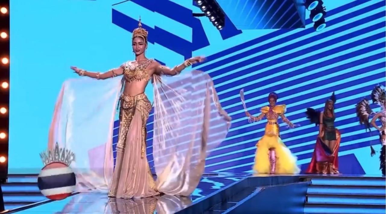 กองประกวดฯ เปิดเวทีโดยการแนะนำตัวแต่ละประเทศ จากนั้น ชมเทปการบันทึกภาพในชุดประจำชาติ โดยตัวแทนสาวไทย โชว์ชุดประจำชาติไทย “เทวนารีศรีวิจายา” สื่อถึงดินแดนภาคใต้ของไทยอันเป็นที่ตั้งของอาณาจักรศรีวิชัยในอดีต ที่มีความเจริญรุ่งเรืองทางด้านพุทธศาสนาและอารยธรรมอันเฟื่องฟูจากการสร้างเทวสถานและประติมากรรมรูปหล่อสัมฤทธิ์ที่เป็นเอกลักษณ์ทางประวัติศาสตร์ของไทย ร่วมกับความงามสตรีภาคใต้ของไทยมารังสรรค์เป็นชุดที่งดงาม ออกแบบและตัดเย็บโดย ห้องเสื้อละลานตา คลอง 6