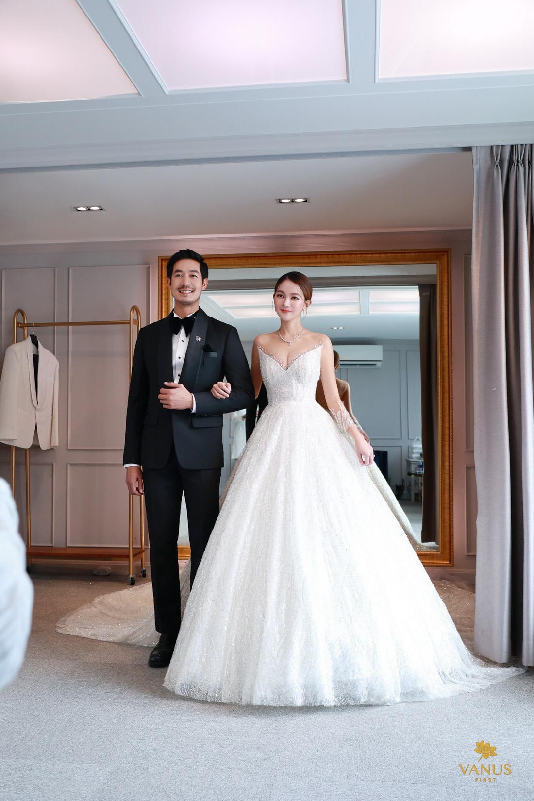 ส่วนชุดเจ้าบ่าวของหนุ่มเวียร์ในงานพิธีฉลองนั้น มาในลุคสูททักซิโด้สีซุปเปอร์แบล็กสุดหรู เพิ่มดีเทลให้ชุดด้วยหูกระต่ายสีดำและพินสูท ลุคนี้ของหนุ่มเวียร์ถ้าจะต้องให้คะแนน 100 คะแนนเต็มคงไม่พอ เพราะลุคนี้ของเจ้าบ่าวหล่อกินขาดของจริง หล่อแบบตะโกนไปเลยจ้า สมกับเป็นพระเอกเบอร์ต้นๆ ของช่อง