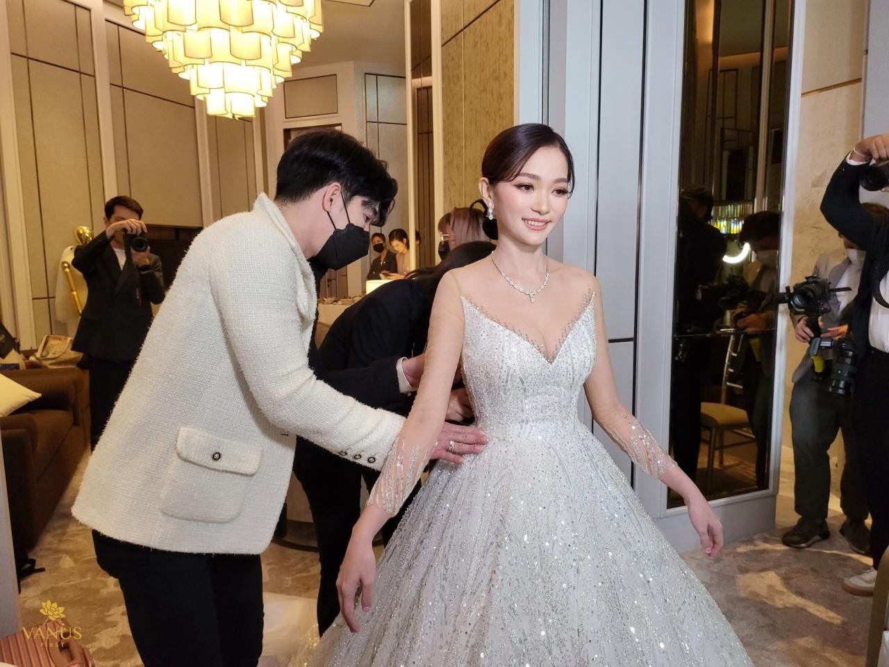 ส่วนชุดเจ้าบ่าวของหนุ่มเวียร์มาในลุคสูททักซิโด้ สีซุปเปอร์แบล็กสุดหรู เพิ่มดีเทลให้ชุดด้วยหูกระต่ายสีดำและพินสูท ลุคนี้ของหนุ่มเวียร์ถ้าจะต้องให้คะแนน 100 คะแนนเต็มคงไม่พอ เพราะลุคนี้ของเจ้าบ่าวหล่อกินขาดของจริง หล่อแบบตะโกนไปเลยจ้า สมกับเป็นพระเอกเบอร์ต้นๆ ของช่อง หล่อ เท่ สมาร์ตสุดๆ.