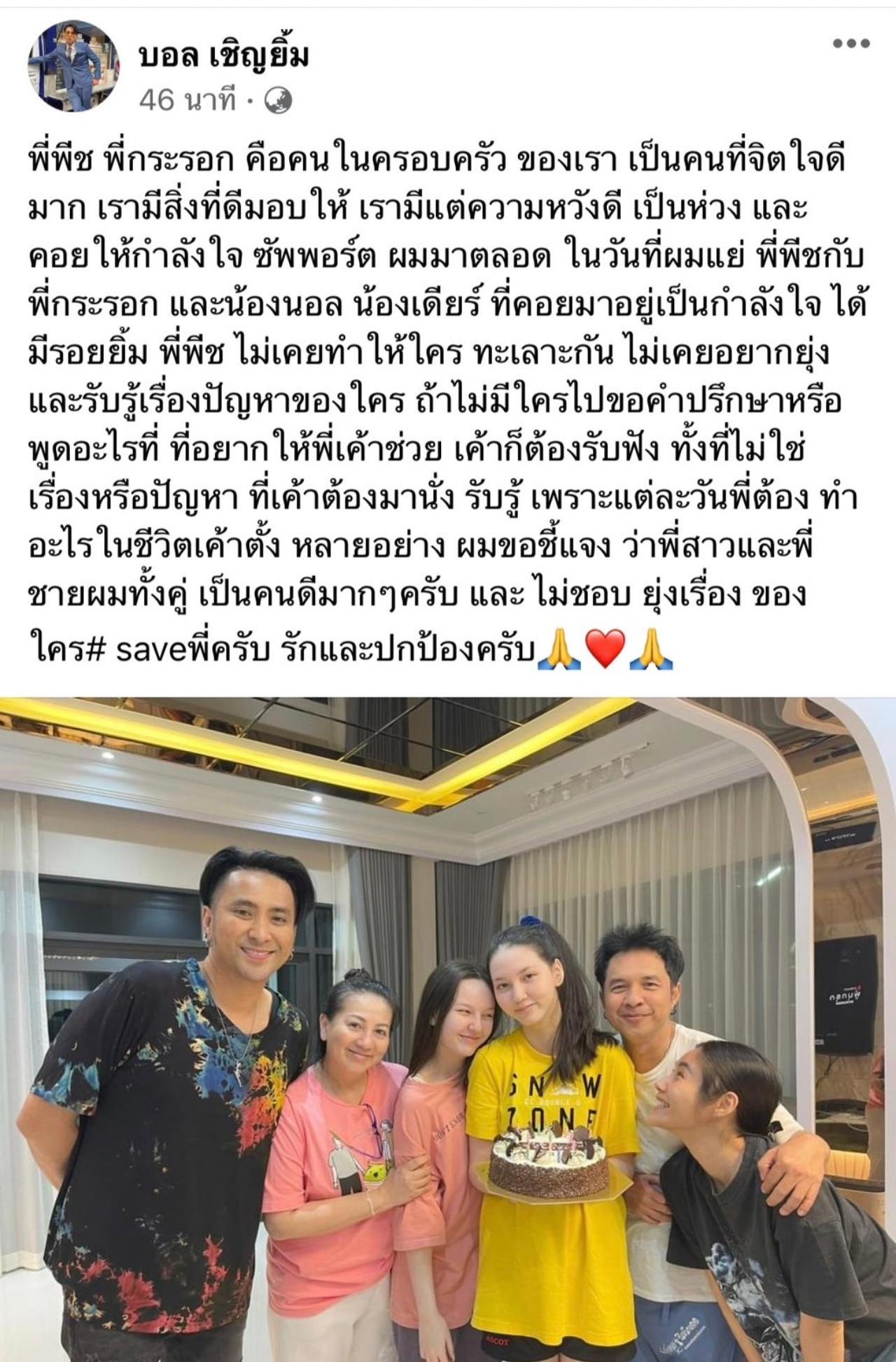 ถ้าไม่มีใครไปขอคำปรึกษาหรือพูดอะไรที่ ที่อยากให้พี่เค้าช่วย เค้าก็ต้องรับฟัง ทั้งที่ไม่ใช่เรื่องหรือปัญหาที่เค้าต้องมานั่งรับรู้ เพราะแต่ละวันพี่ต้องทำอะไรในชีวิตเค้าตั้งหลายอย่าง ผมขอชี้แจงว่าพี่สาวและพี่ชายผมทั้งคู่เป็นคนดีมากๆ ครับ และไม่ชอบยุ่งเรื่องของใคร #saveพี่ครับ รักและปกป้องครับ"