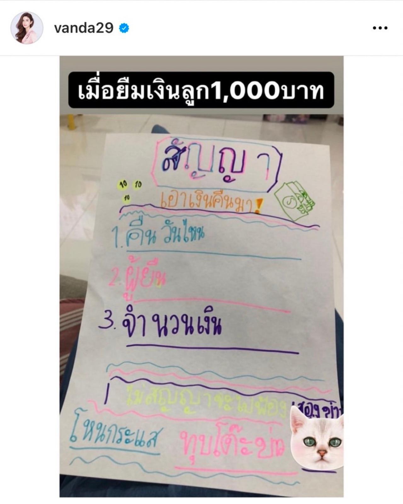 เรียกว่า เป็นโมเมนต์น่ารักของแม่ลูกระหว่าง แม่โบว์ แวนดา สหวงษ์ กับลูกสาว น้องมะลิ พาขวัญ จนทำเอาหลายคนที่เห็นต่างก็ขำและเอ็นดูในความแสบของ น้องมะลิ เมื่อได้มีการยืมเงินกันเกิดขึ้น ซึ่ง แม่โบว์ นั้นได้ยืมเงิน น้องมะลิ ไป 1,000 บาท ด้านลูกสาวได้ทำสัญญาการยืมเงิน เพราะกลัวจะมีการโกงเกิดขึ้น