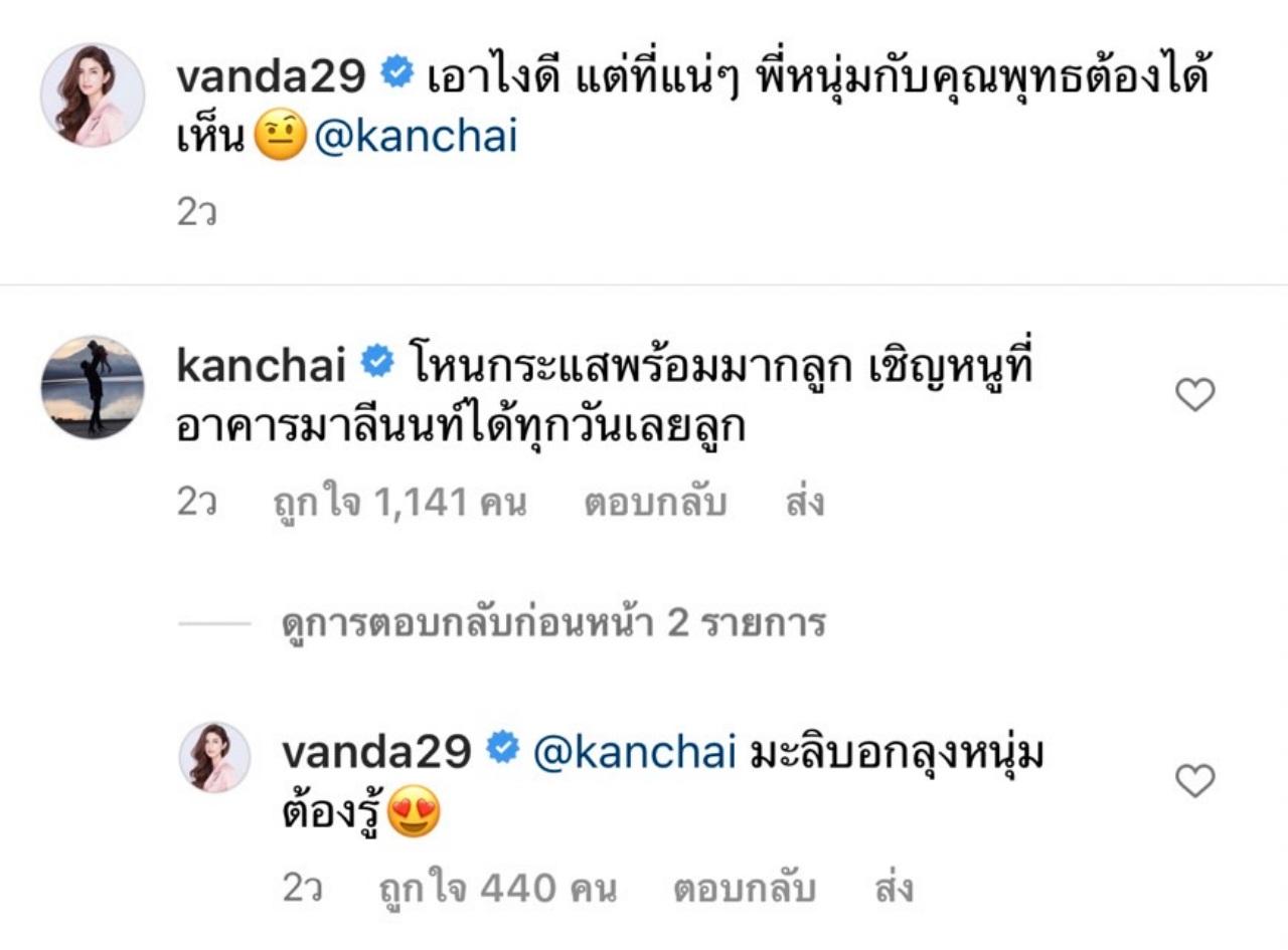 โดย แม่โบว์ ได้โพสต์ภาพดังกล่าว พร้อมเขียนแคปชั่นว่า "เอาไงดี แต่ที่แน่ๆ พี่หนุ่มกับคุณพุทธต้องได้เห็น @kanchai" ด้าน หนุ่ม กรรชัย ก็ได้เข้ามมคอมเมนต์ว่า "โหนกระแสพร้อมมากลูก เชิญหนูที่อาคารมาลีนนท์ได้ทุกวันเลยลูก"