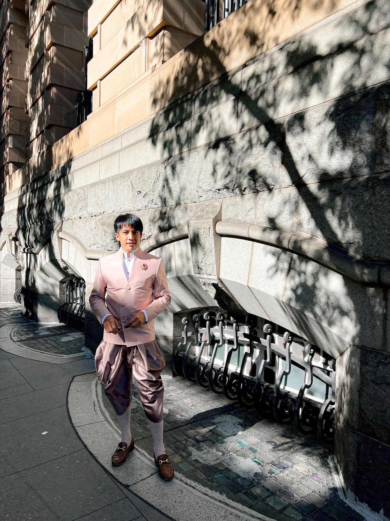 โดยงานนี้ เต๋า ภูศิลป์ สวมใส่ชุดไทยคอพระราชทานประยุกต์ ที่ถูกออกแบบให้มีความผสมผสานระหว่างชุดไทยที่มีความเป็นสากล