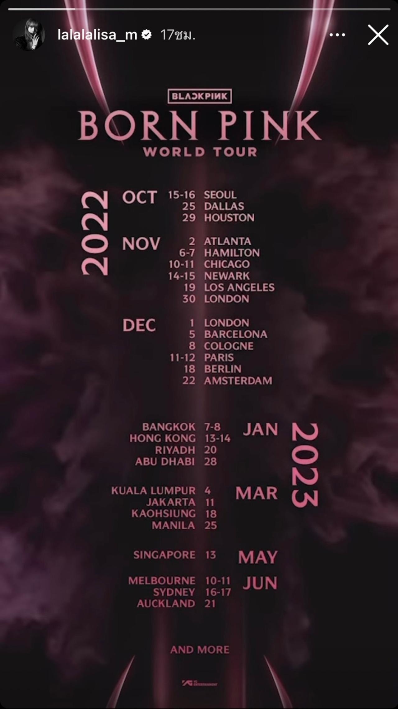 หลังจากที่ BLACKPINK เกิร์ลกรุ๊ปชื่อดัง ได้ประกาศกำหนดการคอนเสิร์ตเวิลด์ทัวร์ BORN PINK ซึ่งจะเริ่มที่กรุงโซล เกาหลีใต้ ในวันที่ 15-16 ต.ค.65 นี้ ก่อนจะเดินทางไปแสดงคอนเสิร์ตที่ อเมริกาเหนือ ยุโรป เอเชีย และโอเชียเนีย ตามลำดับ
