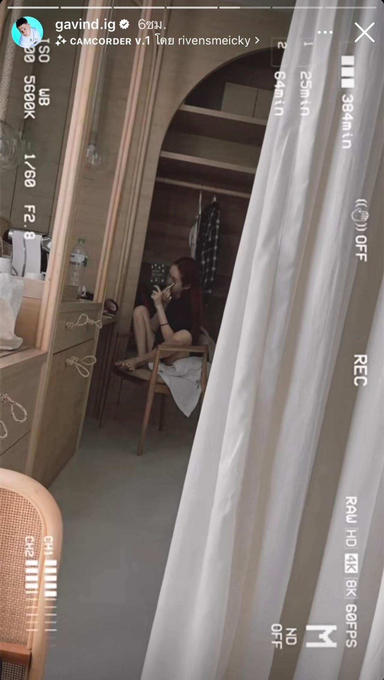 ก่อนที่ กวินท์ จะโพสต์คลิปไปแอบส่องเมียที่กำลังนั่งแต่งหน้าอยู่ พร้อมกับถามปุ้มปุ้ยว่า ปลดบล็อกได้หรือยัง ซึ่งปุ้มปุ้ยก็ได้แค่ยิ้มกรุ้มกริ่มแต่ไม่ได้ตอบคำถามของสามี