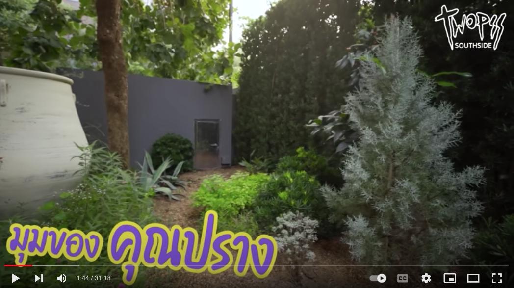 โดยบางช่วงบางตอน โต้ง ก็ได้พาเราไปดูต้นไม้ที่ปลูกเอาไว้บริเวณรอบตัวข้างบ้าน ซึ่งสวนนี้ ปราง เป็นคนติดต่อขอทำเองทั้งหมด เป็นสวนต้นไม้จากต่างประเทศ ที่สามารถอยู่ในอากาศร้อนได้ 3 วันถึงจะรดน้ำที ก่อนที่ โต้ง จะทิ้งท้ายด้วยประโยคนี้ว่า “มุมนี้ปรางรักมาก” และมุมนี้ก็เป็น “มุมโปรดของปราง” เขาด้วย.