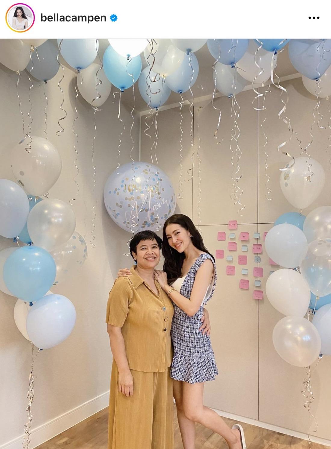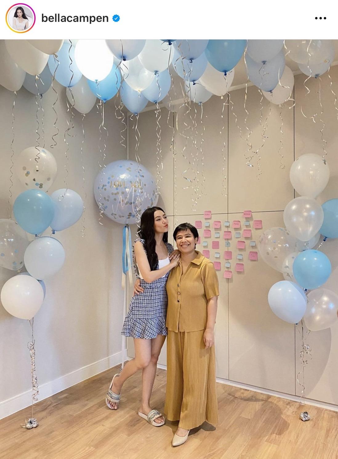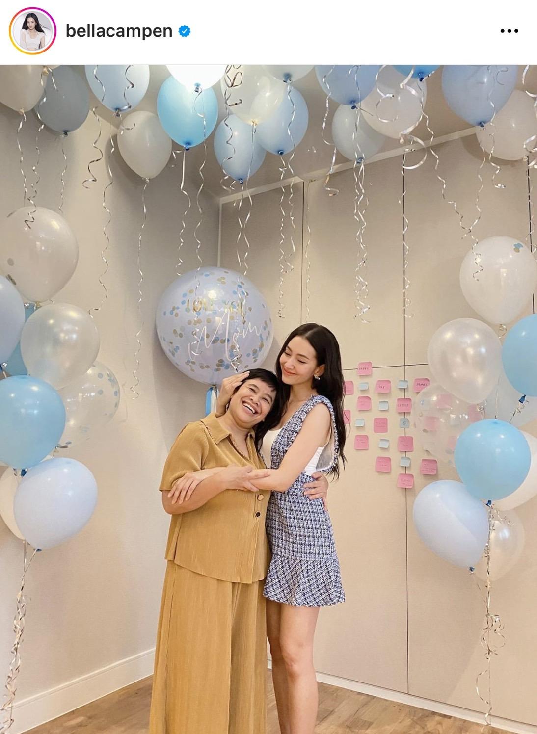 มาต่อกันที่นางเอกสุดปังกวาดรายได้ภาพยนตร์ไป 200 กว่าล้าน อย่างสาว เบลล่า ราณี แคมเปน ที่โพสต์ภาพคู่น่ารักๆ กับคุณแม่ ปราณี ภายในบ้านที่ประดับไปด้วยลูกโป่งโทนฟ้าขาว พร้อมระบุข้อความว่า "Cos every day is Mummy’s Day แม่ยิ้มออกลูกก็แฮปปี้ ลง Vlog วันแม่ไว้ให้แล้วน๊า ไปดูกันได้เลยค่ะ ที่ Youtube ,FB @ployandbell คำอวยพรอยู่ในนั้นหมดแล้ว อิอิ ปล. ขอบคุณลูกโป่งด่วนจี๋ที่ถูกใจมากด้วยงับ"