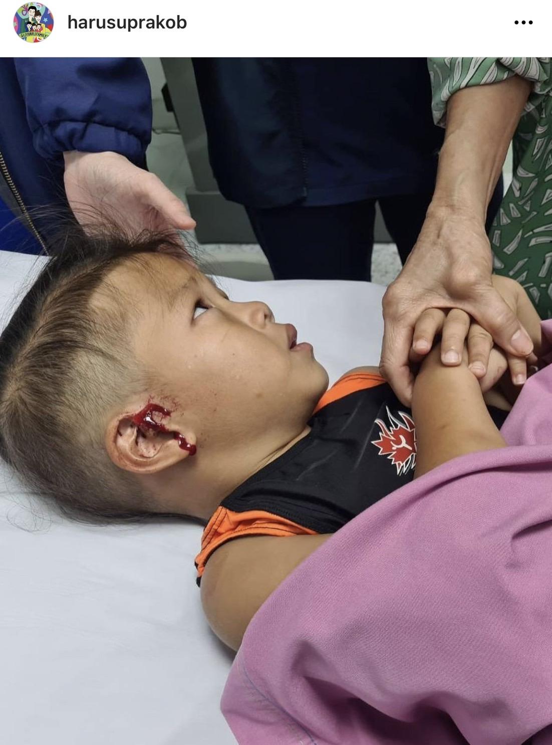 ซึ่งคุณแม่ ฮารุ ได้โพสต์อัปเดตอาการ น้องเอเดน เบื้องต้นว่าตอนนี้พาส่งโรงพยาบาลเป็นที่เรียบร้อย โดนคุณหมอจับเย็บแผลไป 25 เข็ม ทั้งๆ ที่คุณพ่อคุณแม่ไม่ได้อยู่ด้วยในเวลานั้นก็ตาม พร้อมกับระบุแคปชั่นว่า