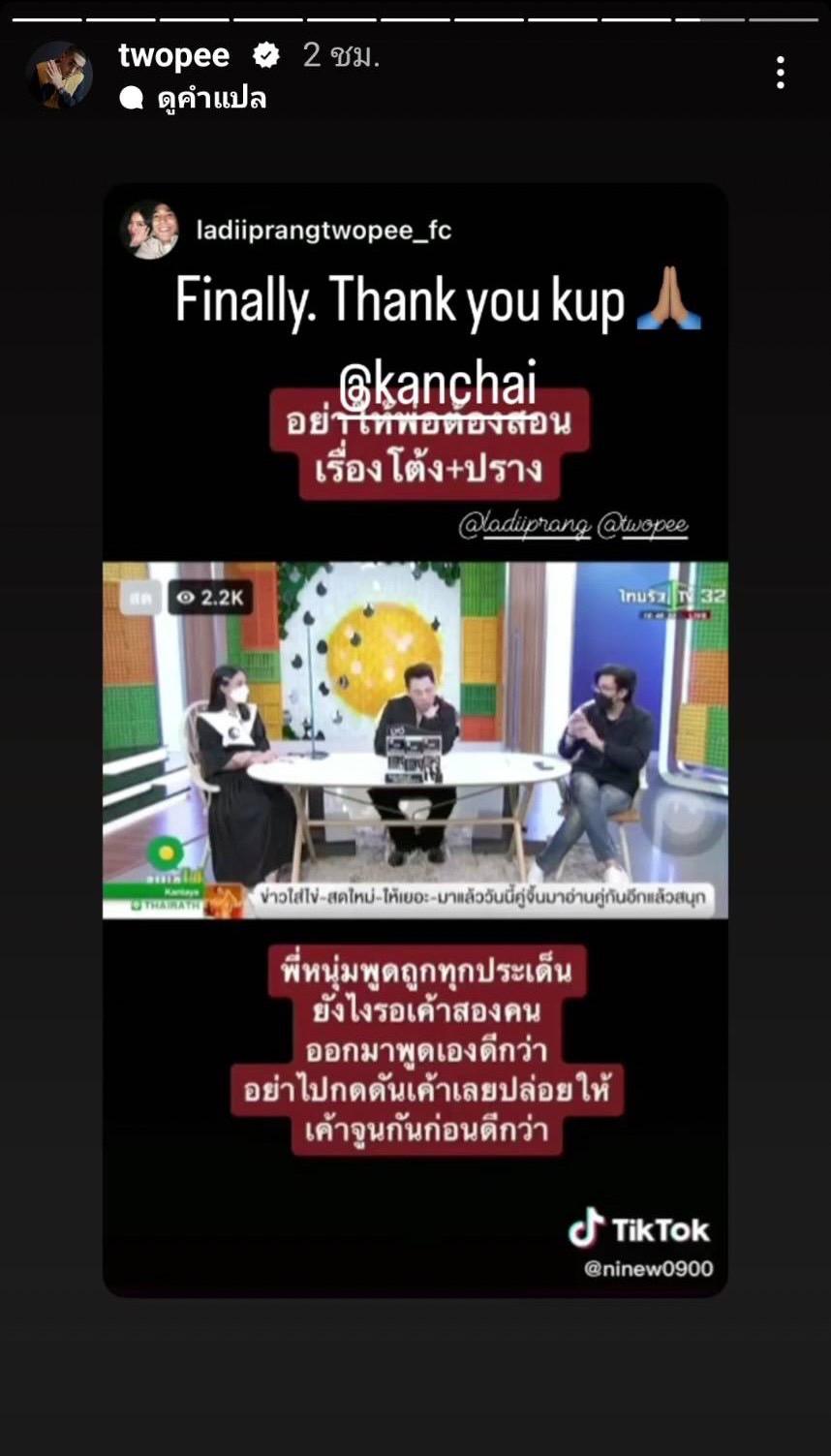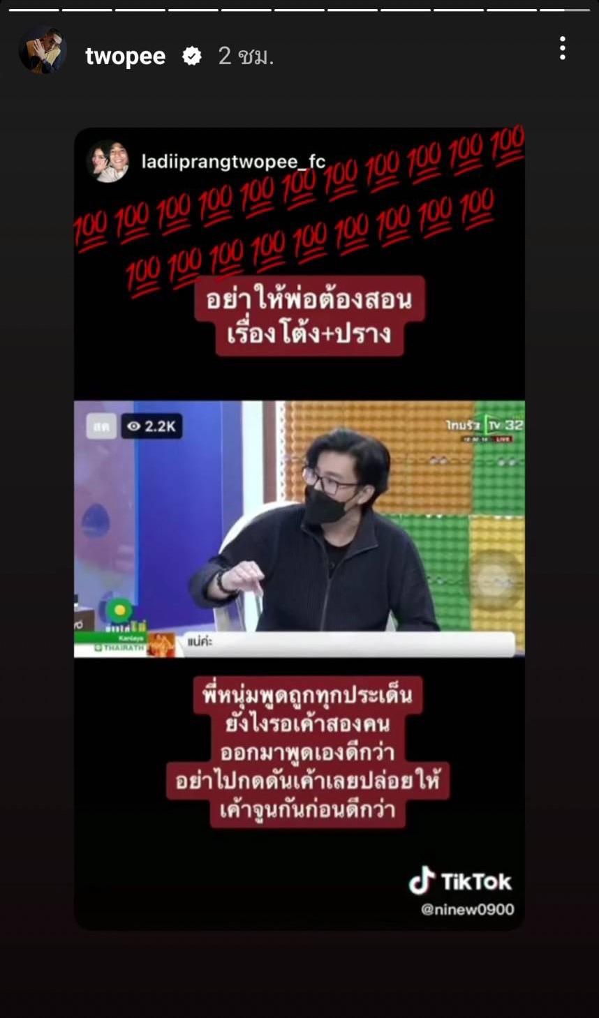 แต่ล่าสุดเมื่อช่วงเช้าของวันนี้ โต้ง ก็ได้ทำการลบไอจีสตอรี่ดังกล่าวออกไปเป็นที่เรียบร้อยแล้ว.
