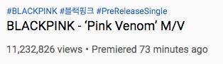 ซึ่งกระแสคนชมบอกเลยว่าภายในเวลาเพียงแค่ 1 ชั่วโมง เอ็มวีเพลง Pink Venom (พิงก์ วีนอม : อสรพิษสีชมพู) ของ 4 สาววง แบล็กพิงก์ BLACKPINK ก็ทำยอดวิวได้ถล่มทลายไปแล้วกว่า 12,177,508 ล้านวิว งานนี้สาวกชาวบลิ๊งค์ เอาใจช่วยเข้าไปสนับสนุนกดฟัง MV เพลงใหม่ให้ยอดวิว 24 ชั่วโมง หรือ 1 วัน ทะลุ 100 ล้านวิวกันไปเลยจ้า.