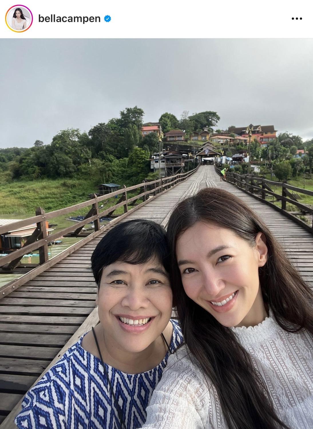 ล่าสุดสาว เบลล่า เลยทำหน้าที่ลูกที่ดีด้วยการจัดทริปพาคุณแม่เปลี่ยนบรรยากาศไปทานข้าวต่างจังหวัด เที่ยวไหว้พระทำบุญ ที่จังหวัดกาญจนบุรี ควงกันไปถ่ายรูปสวยๆ บนสะพาน เป็นอีกหนึ่งโมเมนต์ที่น่าประทับใจ ที่ได้เห็นรอยยิ้มอันสดใสของแม่ลูกคู่นี้