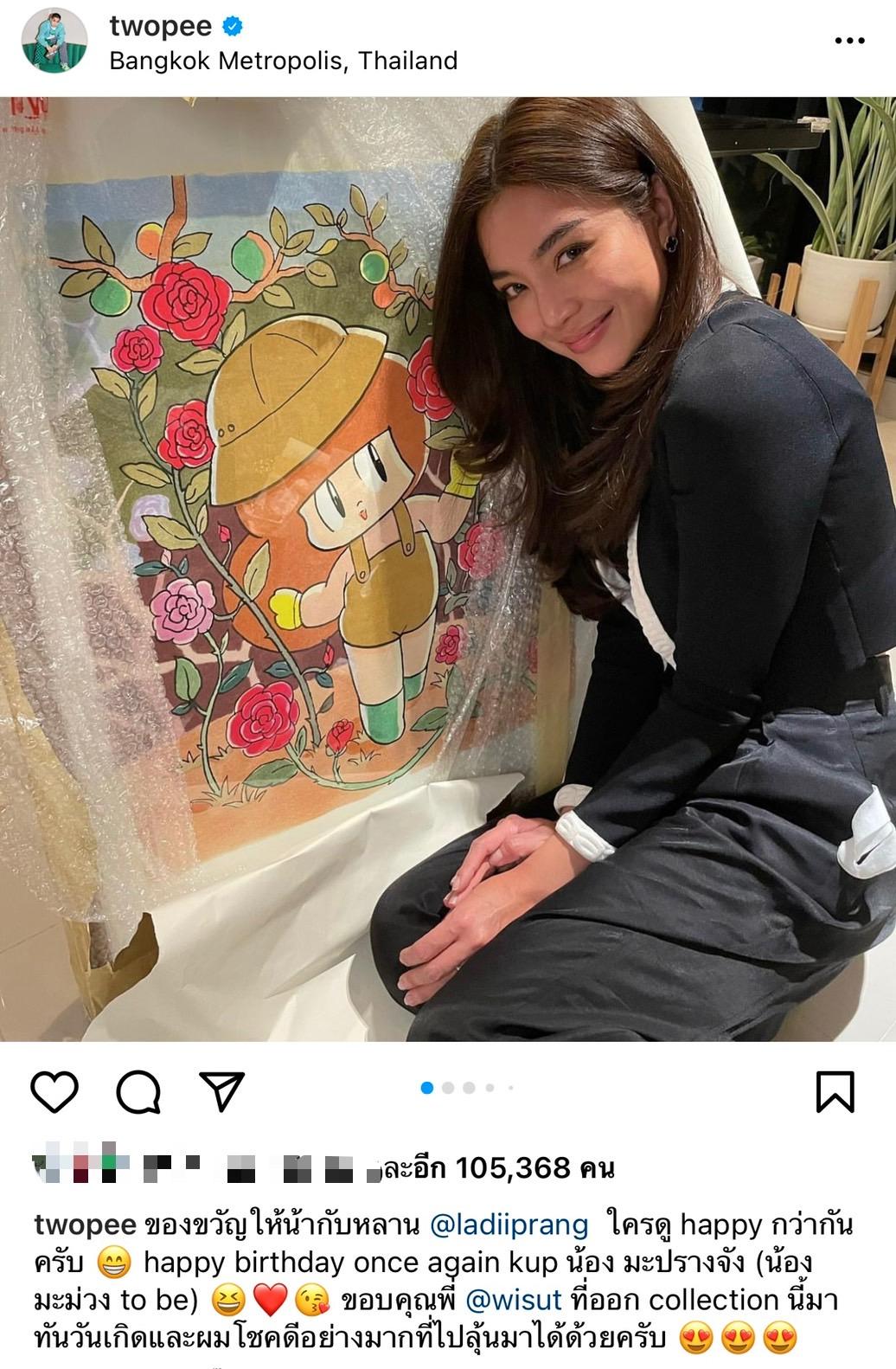 ล่าสุดนักร้องหนุ่ม โต้ง ทูพี ก็ได้ออกมาเคลื่อนไหวทันที หลังจากที่สาว ปราง ให้สัมภาษณ์เสร็จ เป็นการโพสต์ไอจีสตอรี่ไปที่ฝาผนังบ้านที่มีรูปวาดตัวการ์ตูนเด็กผู้หญิง ซึ่งรูปภาพนี้หนุ่ม โต้ง เคยสั่งทำให้เป็นของขวัญกับ ปราง มาก่อนหน้านี้แล้ว เมื่อช่วงเดือนเมษายนที่ผ่านมา ซึ่งคาดว่าน่าจะเป็นความผูกพันของเขาทั้งคู่ที่ยังรู้สึกดีต่อกันนั่นเอง.