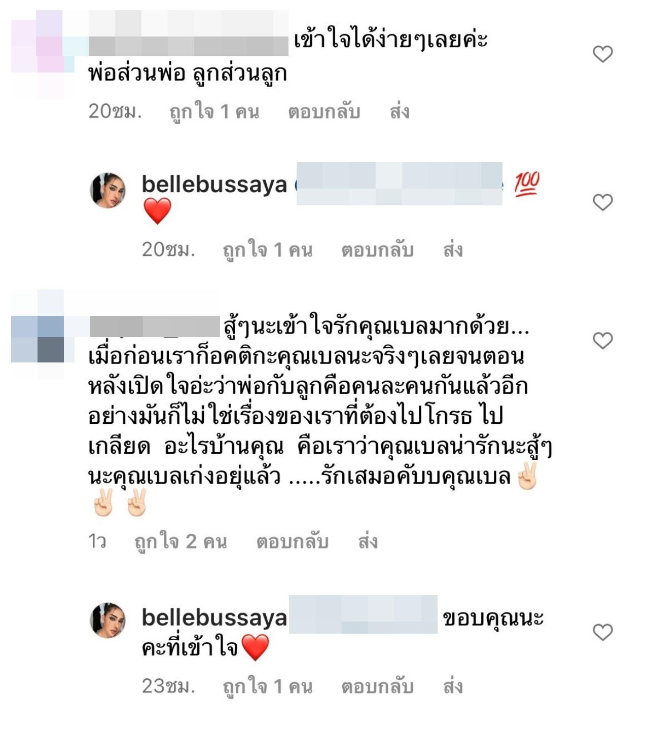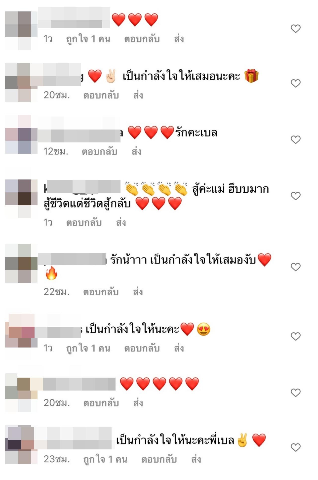 หลังจากที่ เบล บุษญา โพสต์ข้อความดังกล่าวไป ก็มีเพื่อนๆ และแฟนๆ เข้ามาคอมเมนต์ให้กำลังใจอย่างมากมาย