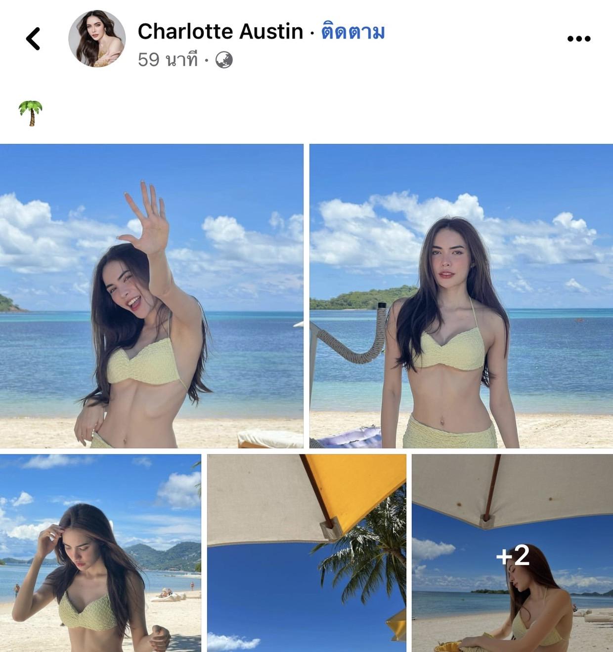 งานนี้คู่จิ้นอย่างสาว ชาล็อต ออสติน รองมิสแกรนด์ไทยแลนด์ 2022 ก็ไม่พลาดบ้าง โพสต์รูปตัวเองแบบจัดเต็มฟลูออปชันมาเป็นเซตกันไปเลย ใส่บิกินีสีหลืองเหมือนกันกับ อิงฟ้า แต่คนนี้ขออวดผิวท้าลมแดดให้เห็นความออร่าขาวจั๊วะสุดๆ แบบไร้ที่ติ