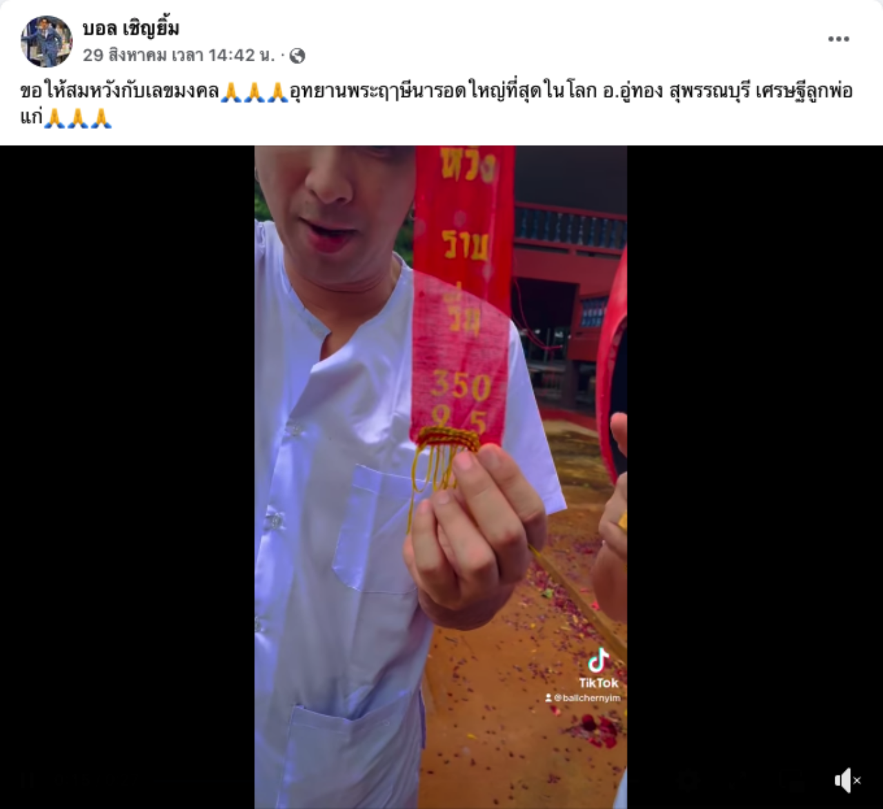 สำหรับเลขจากหางประทัดที่ บอล โชว์ให้แฟนๆ ได้เห็นนั้นเป็นเลข "350-95" หลายคนที่ติดตามต่างเข้ามาร่วมอนุโมทนาสาธุบุญกันเป็นจำนวนมาก.