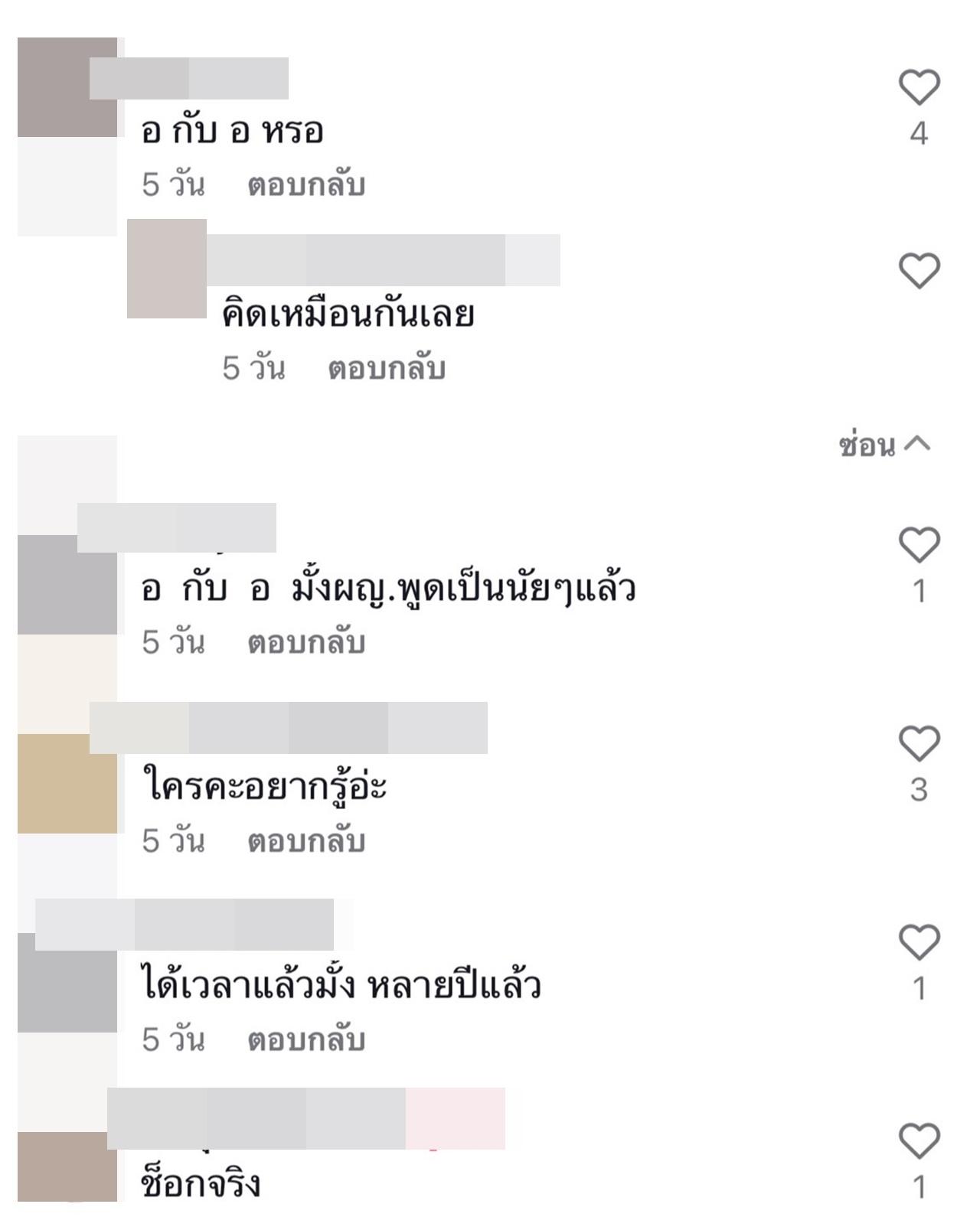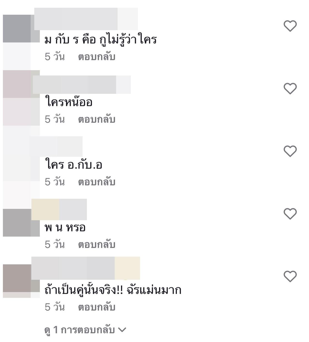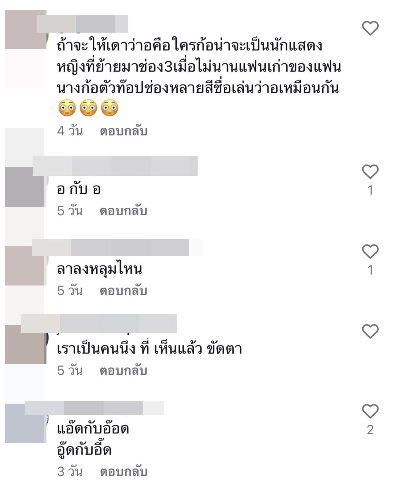 และหลังจากนั้นก็มีชาวเน็ตจำนวนไม่น้อย เข้ามาคอมเมนต์เดากันยกใหญ่ว่าคู่รักดารา ไฮโซคนไหนที่เลิกกันบ้าง อาทิ "อ กับ อ เหรอ, อ กับ อ มั้ง ผญ.พูดเป็นนัยๆ แล้ว, ได้เวลาแล้วมั้ง หลายปีแล้ว, ม กับ ร คือ, พ น เหรอ, ถ้าจะให้เดาว่า อ คือใคร ก็น่าจะเป็นนักแสดงหญิงที่ย้ายมาช่อง 3 เมื่อไม่นาน แฟนเก่าของแฟนนางก็ตัวท็อปช่องหลายสีชื่อเล่นว่า อ เหมือนกัน"