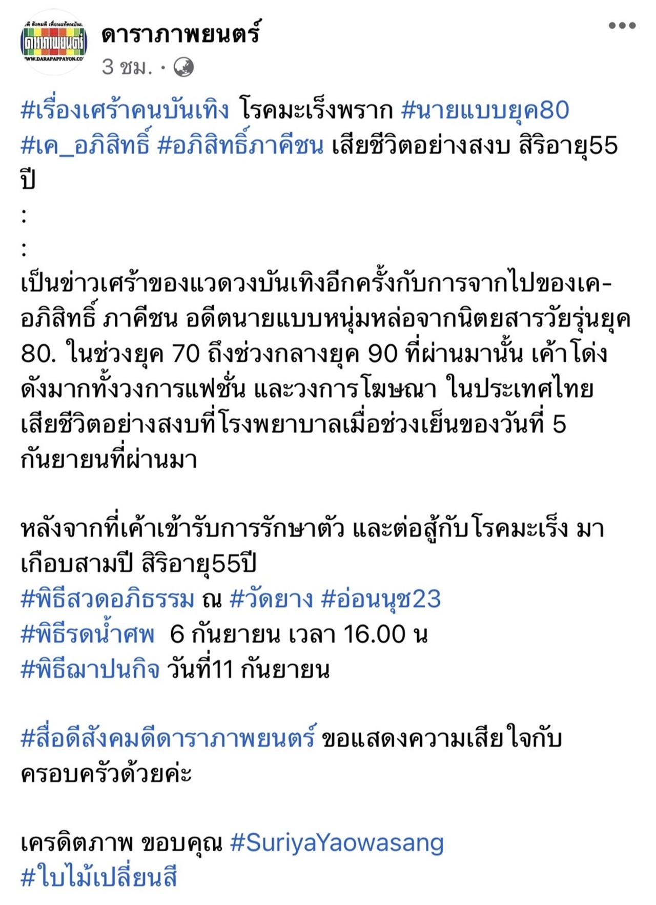 "#เรื่องเศร้าคนบันเทิง โรคมะเร็งพราก #นายแบบยุค80 #เค_อภิสิทธิ์ #อภิสิทธิ์ภาคีชน เสียชีวิตอย่างสงบ สิริอายุ 55 ปี