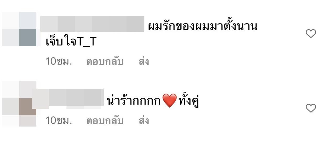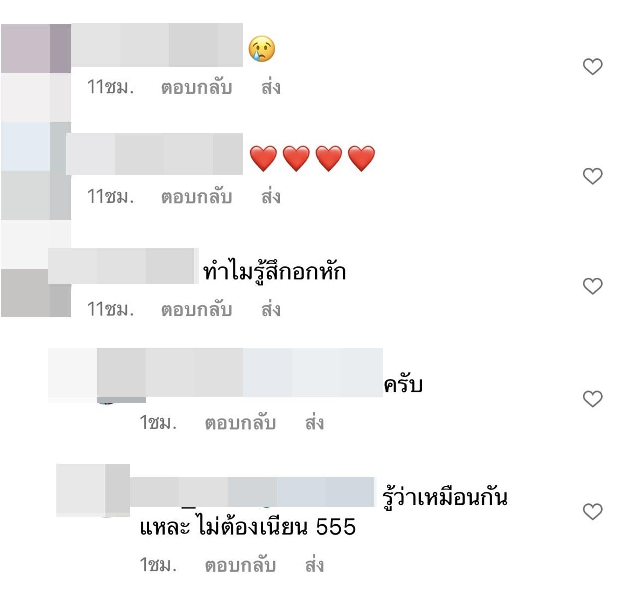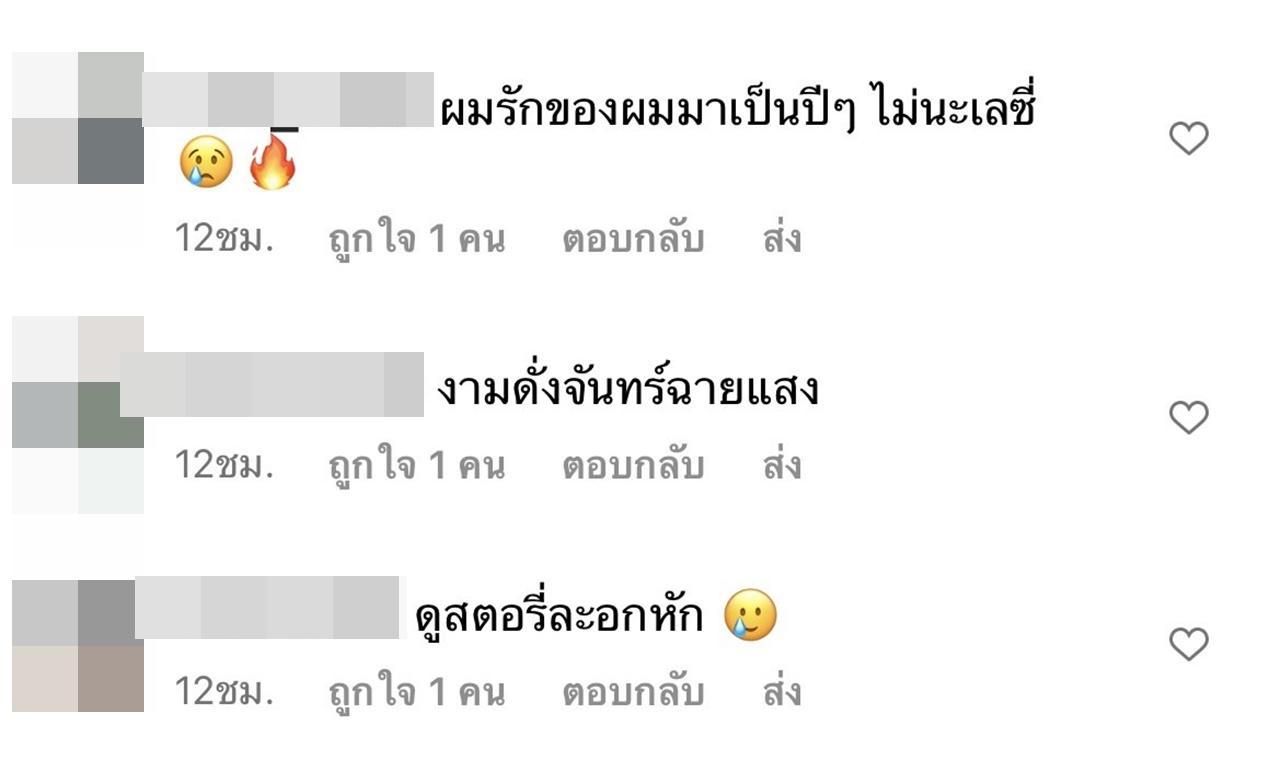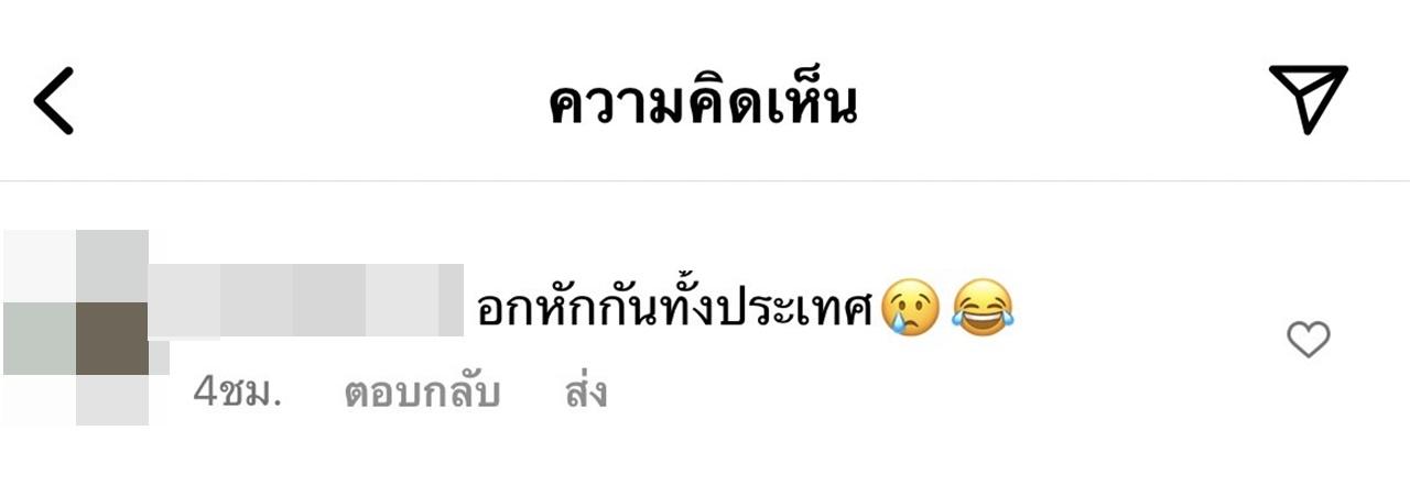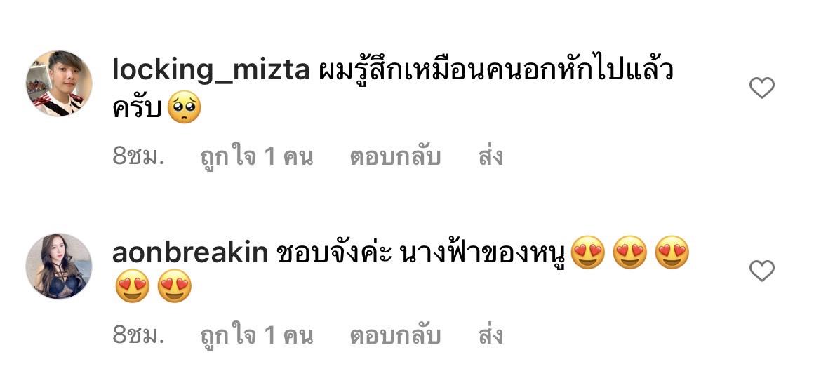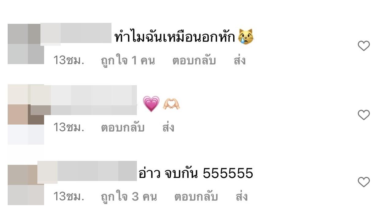 หลังจากที่หนุ่มๆ ได้เห็นภาพบาดตาบาดใจดังกล่าว ก็รีบเข้ามาคอมเมนต์บอกความรู้สึกเมื่อได้เห็นภาพนั้นกันเป็นแถว อาทิ "ทำไมฉันเหมือนอกหัก, ผมรักของผมมาเป็นปีๆ ไม่นะเลซี่, ดูสตอรี่ละอกหัก, อกหักเลย, จบเกมรูปสุดท้าย เฮ้อออ, อกหักทั้งโลก, ทำไมรู้สึกอกหัก, ผมรักของผมมาตั้งนาน เจ็บใจ"
